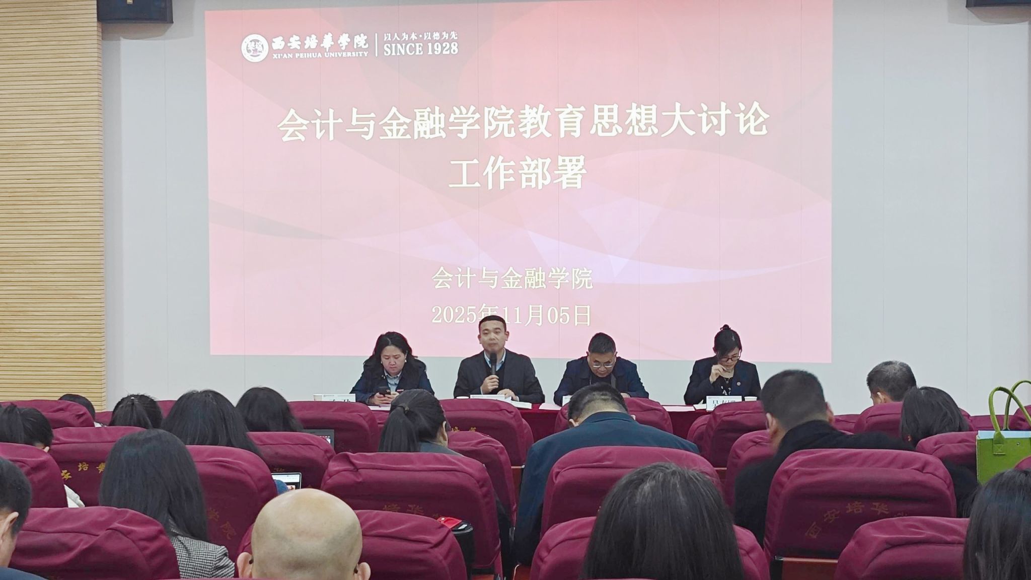 2025年10月5日16时,会计与金融学院在J201教室召开全院教职工大会,会议以审核评估整改终期验收工作推进及教育思想大讨论工作部署为主题。院长吴旺延、党委书记兼行政副院长刘斌、教学副院长孟君、院长助理吴春娜及全体教职工参加会议。会议由刘斌副院长主持。