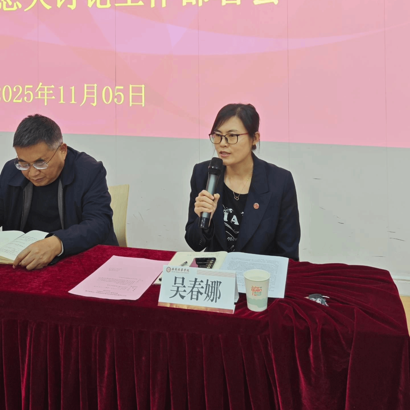 会议第二项由院长助理吴春娜老师就申硕各项工作的具体情况进行通报。吴老师指出申硕工作是学校高质量发展的一项重点工作,对于申硕专班及全体教职工为前期工作付出的努力予以肯定,同时她提出申硕工作正处于关键时期,与每位老师息息相关,她希望老师们聚焦研究方向,提升参与工作的主动性和积极性多产出高质量成果、共同参与学科建设。