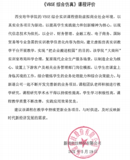 《VBSE 综合实训》课程为学生提供了真实的商业社会环境,课程既有效检验学生专业知识的掌握程度和对知识的综合运用能力,又能培养学生的沟通能力、协调能力、分析和解决问题的能力。相信未来在课程团队的精心设计和不断的实践中将积累更多有效的数据和经验,对教法进行完善和改革,形成最佳的教学模式,为企业、社会培养出具有更强胜任力的综合性人才。