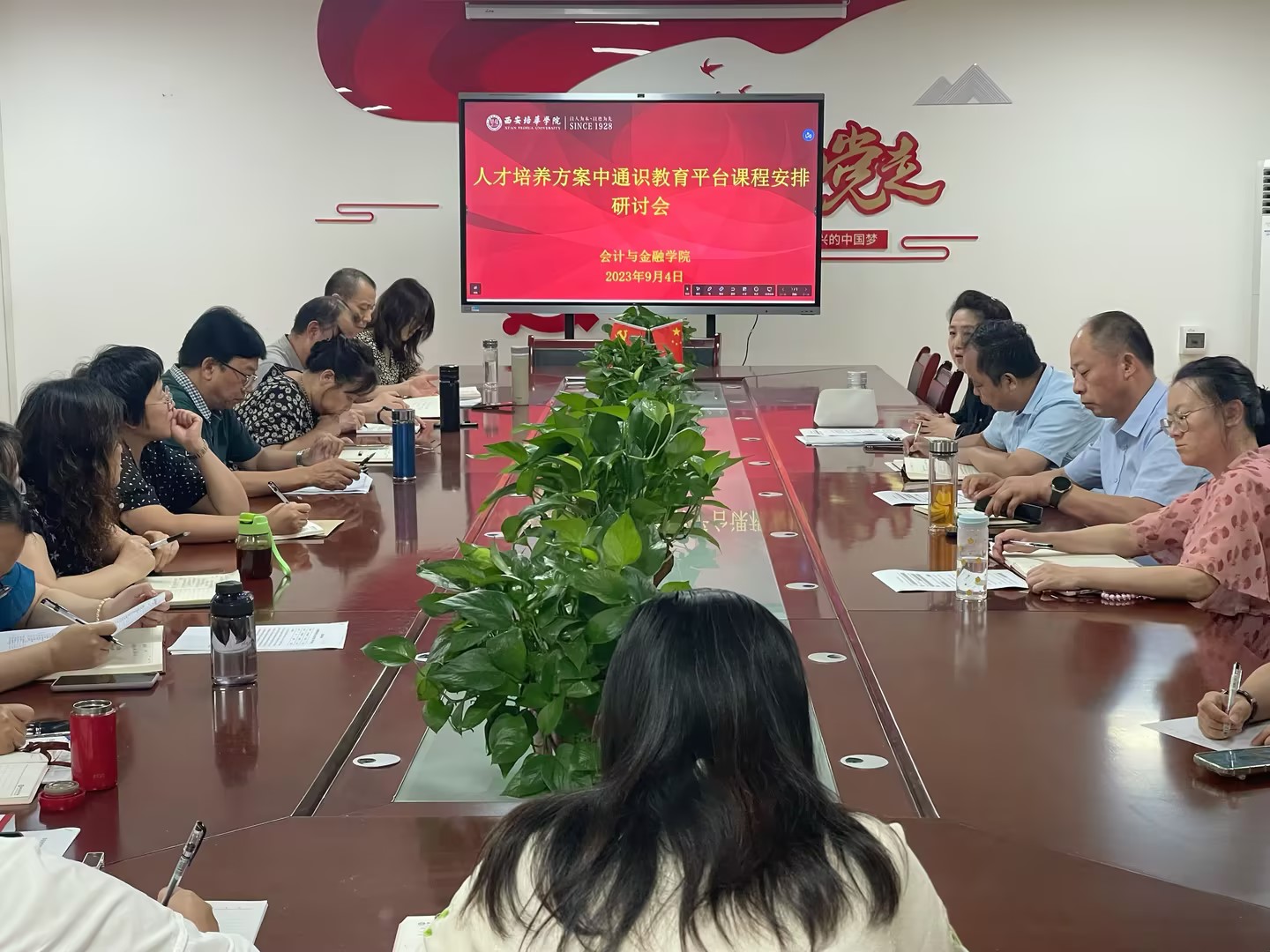 为切实提高专业建设与社会需求的适应度,提高人才培养目标与培养效果的达成度,建立完善的应用型本科人才培养体系,2023年9月4日(星期一)下午14:30,会计与金融学院在博远楼2115会议室召开了“人才培养方案中通识教育平台课程安排”研讨会,教学副院长杨仕鹏、党委书记兼行政副院长史立军、副院长孟君,综合办公室主任周嫚,各系主任,各专业带头人及部分骨干教师出席本次会议。会议由孟君副院长主持。