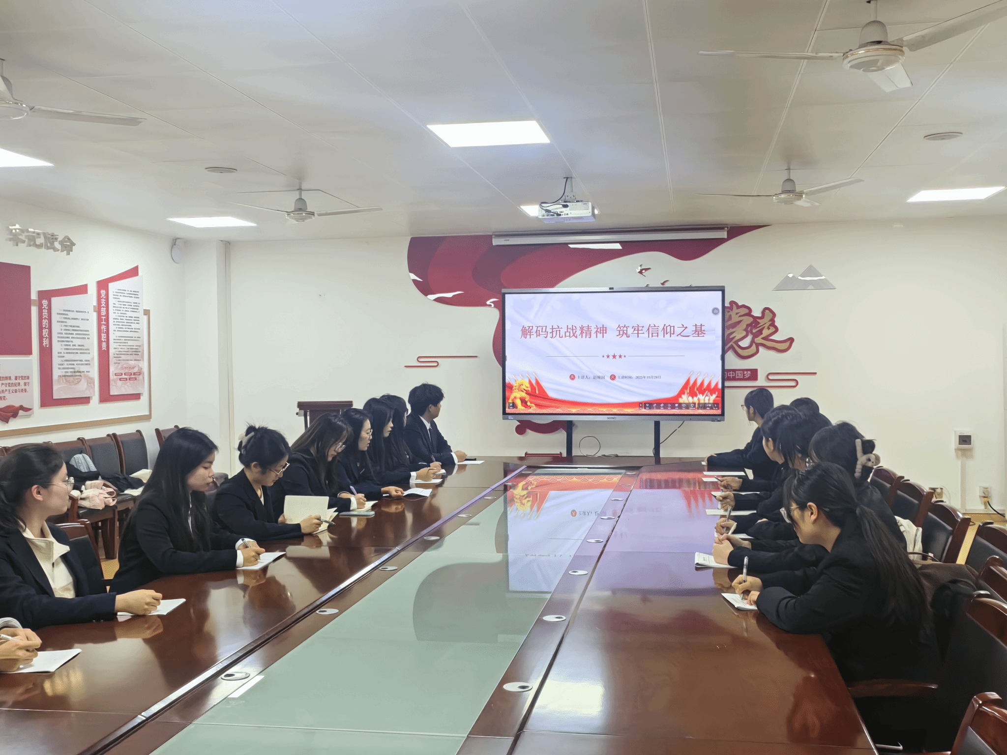 学生支部则针对青年学生特点,注重理想信念教育和爱国主义情怀培养:学生第一党支部书记赵娅囡以 “解码抗战精神 筑牢信仰之基” 为主题,在10月28日为支部成员讲授抗战历史与精神传承;学生第二党支部书记寇方译通过《学党规党纪,做合格党员》专题党课,帮助学生党员强化纪律意识和规矩意识;学生第三至第六支部书记分别围绕 “两个确立”“两个维护”、二十届四中全会精神、爱国主义与时代精神等主题开展授课,覆盖所有学生支部党员。