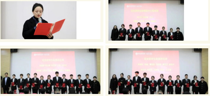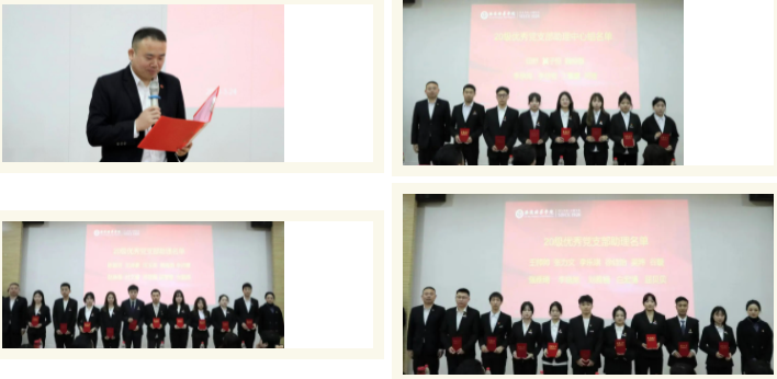 会计与金融学院党委副书记刘斌宣读20级优秀党支部助理名单并颁发荣誉证书