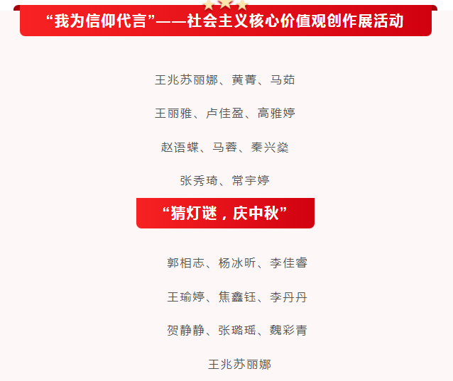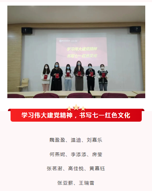 为贯彻落实二十大精神,深入学习习近平新时代中国特色社会主义思想,继承与发扬党的优良传统,贯彻党的方针,坚定党的信念,拓宽学生视野,增长学生见识,丰富学生在疫情防控期间的精神文化生活,会计与金融学院党委在过去的一年中先后开展了新时代好青年、党史知识竞赛、“阅读经典,书香培华”、“我为信仰代言”社会主义核心价值观创作展、“猜灯谜,庆中秋”、老少三代话党恩、“讲红色故事,传红色基因”朗读比赛、学习伟大建党精神、书写七一红色文化等系列活动。经过这些比赛激烈的角逐,评选出活动中的一些佼佼者。