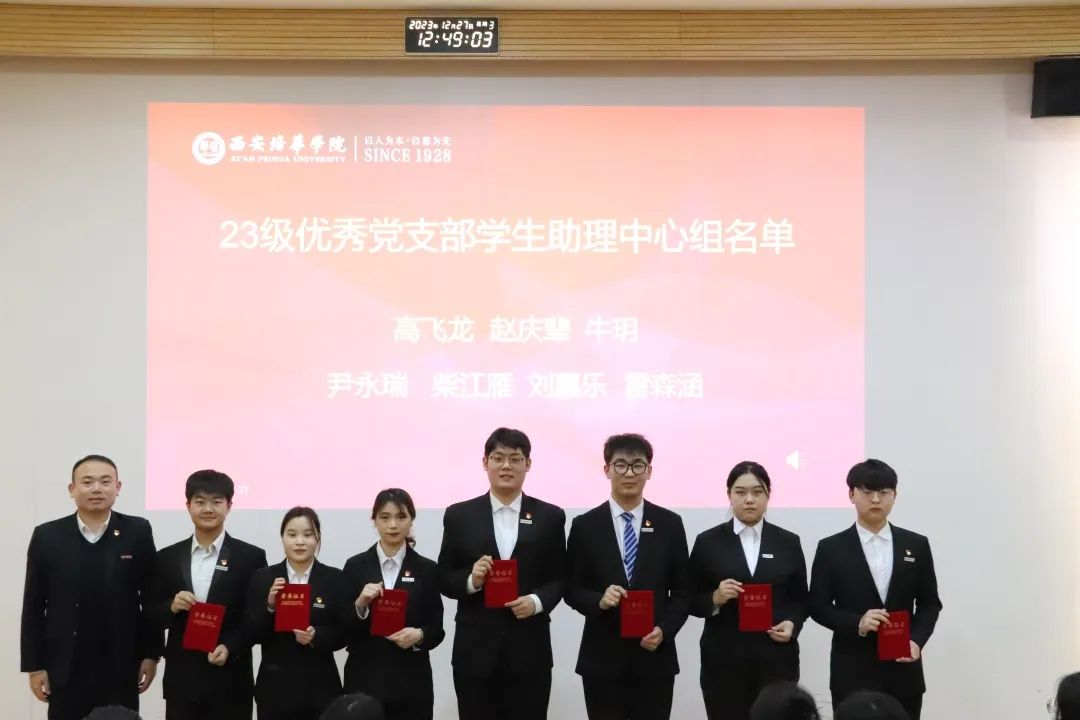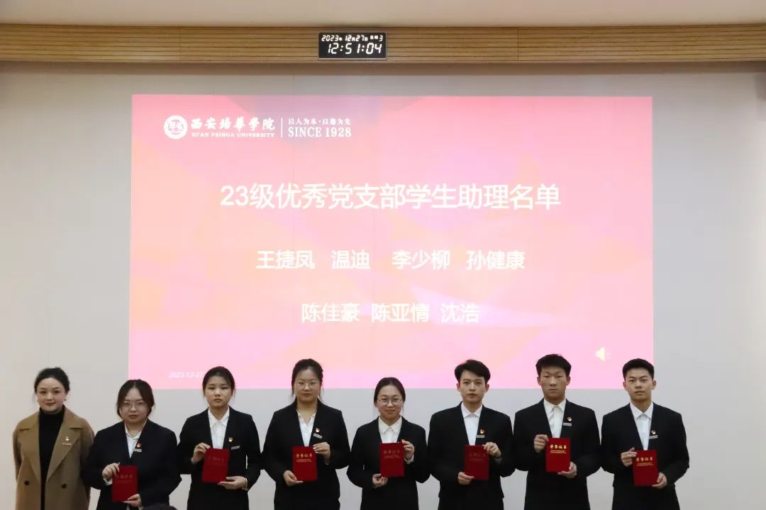 2023年12月27日,西安培华学院会计与金融学院党委表彰暨学生助理团换届大会在博远楼J201教室召开。参会人员有会计与金融学院党委副书记刘斌、党务行政干事朱梦阳、党务专干刘福琴、会计与金融学院党委学生支部书记们及第50期优秀积极分子,会议由学生支部负责人左金辉和张梓怡同学主持。