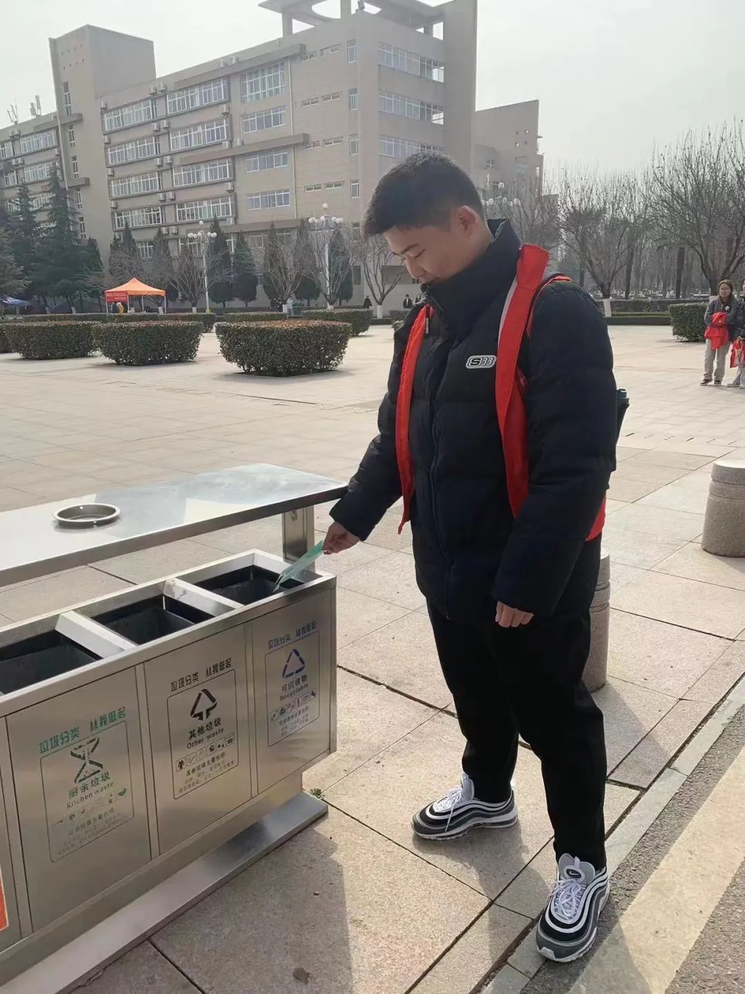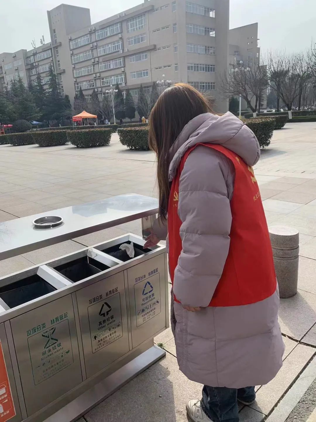 此次活动,我院党委志愿者们在校园内组织共同拾捡垃圾,清扫校园角落,合理进行垃圾分类。他们身穿红马甲,手持垃圾袋等工具,在清捡垃圾的同时,积极给过往学生宣传履行文明行为,爱护校园环境,这也促使了更多青年共同践行雷锋精神,积极投身校园公益活动中来。