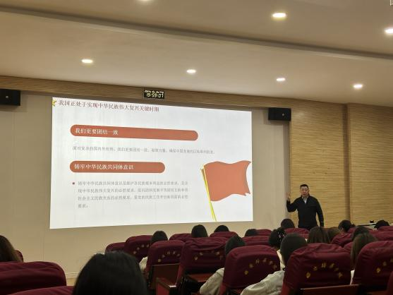 班会上,辅导员通过有关增进中华民族共同体意识教育的纪录片,让同学们直观地感受各民族的文化魅力和团结奋斗的精神。同时,向同学们介绍了中华民族共同体意识的内涵、重要意义、历史发展等内容,使学生认识到各民族长期的历史发展过程,引导学生树立正确的民族观。