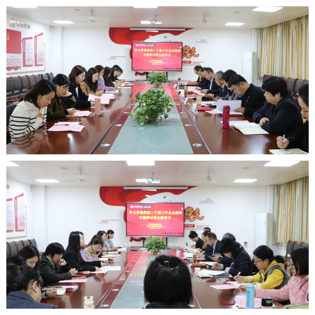 为深入学习贯彻党的二十届三中全会精神,根据我校《关于参加全省高校领导干部暨委厅直属机关学习贯彻党的二十届三中全会精神专题研讨班的通知》,会计与金融学院党委于2024年11月6日和11月7日,在博远楼2115会议室连续两天召开了专题研讨班分组学习会议。会议由会计与金融学院党委书记兼行政副院长刘斌主持,会计与金融学院院长赵选民、会计与金融学院副院长孟君、会计与金融学院副院长丁阳、会计与金融学院党委副书记高乐及党委委员、师生党支部书记、党务干事及教师党员代表参加了会议。