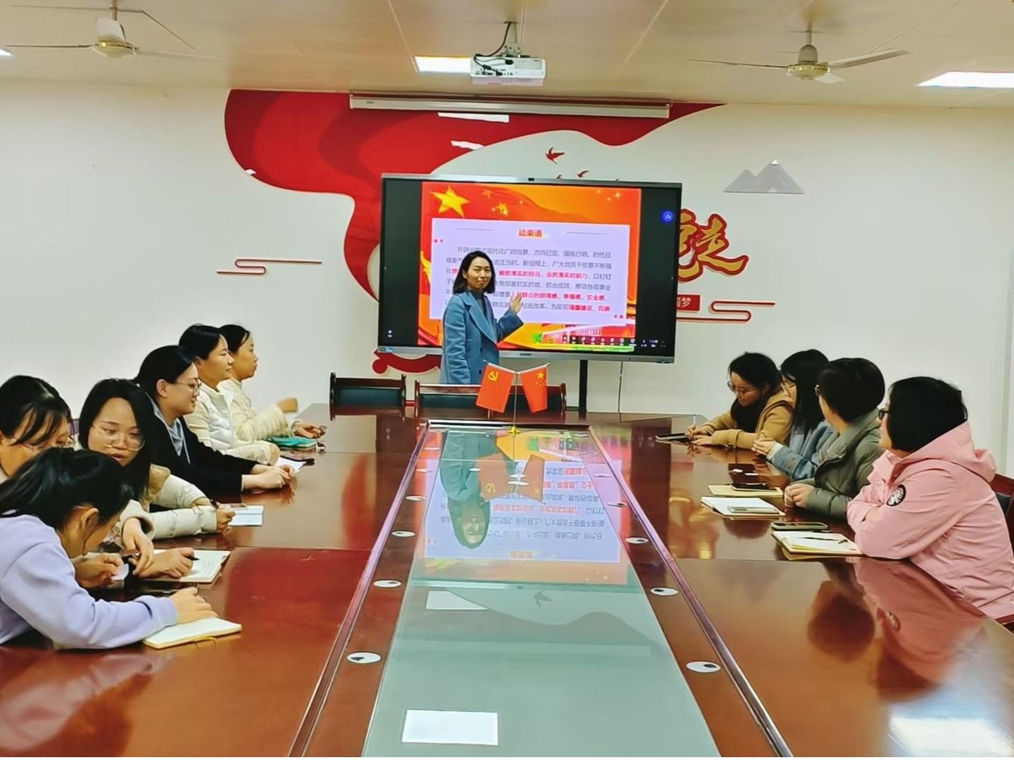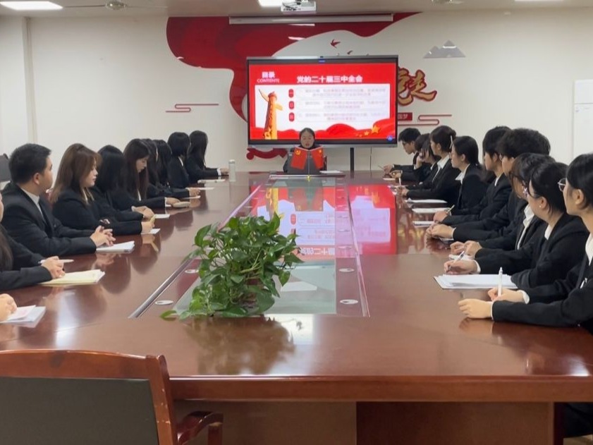 会计与金融学院学生第八党支部于11月12日在2115会议室举行了以“学习贯彻党的二十届三中全会精神,以钉钉子精神抓好改革落实”为主题的党课学习教育活动,支部书记赵娅囡老师紧紧围绕推进中国式现代化进一步全面深化改革进行了讲解。她强调,同学们作为新时代的青年党员,要挺膺担当,躬身力行,牢记“改革开放是党和人民事业大踏步赶上时代的重要法宝”。