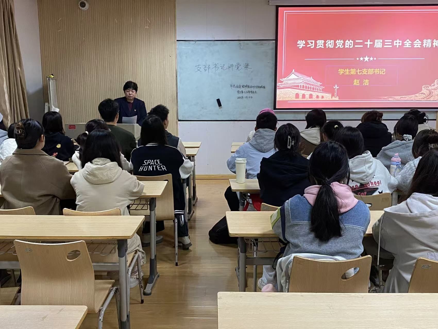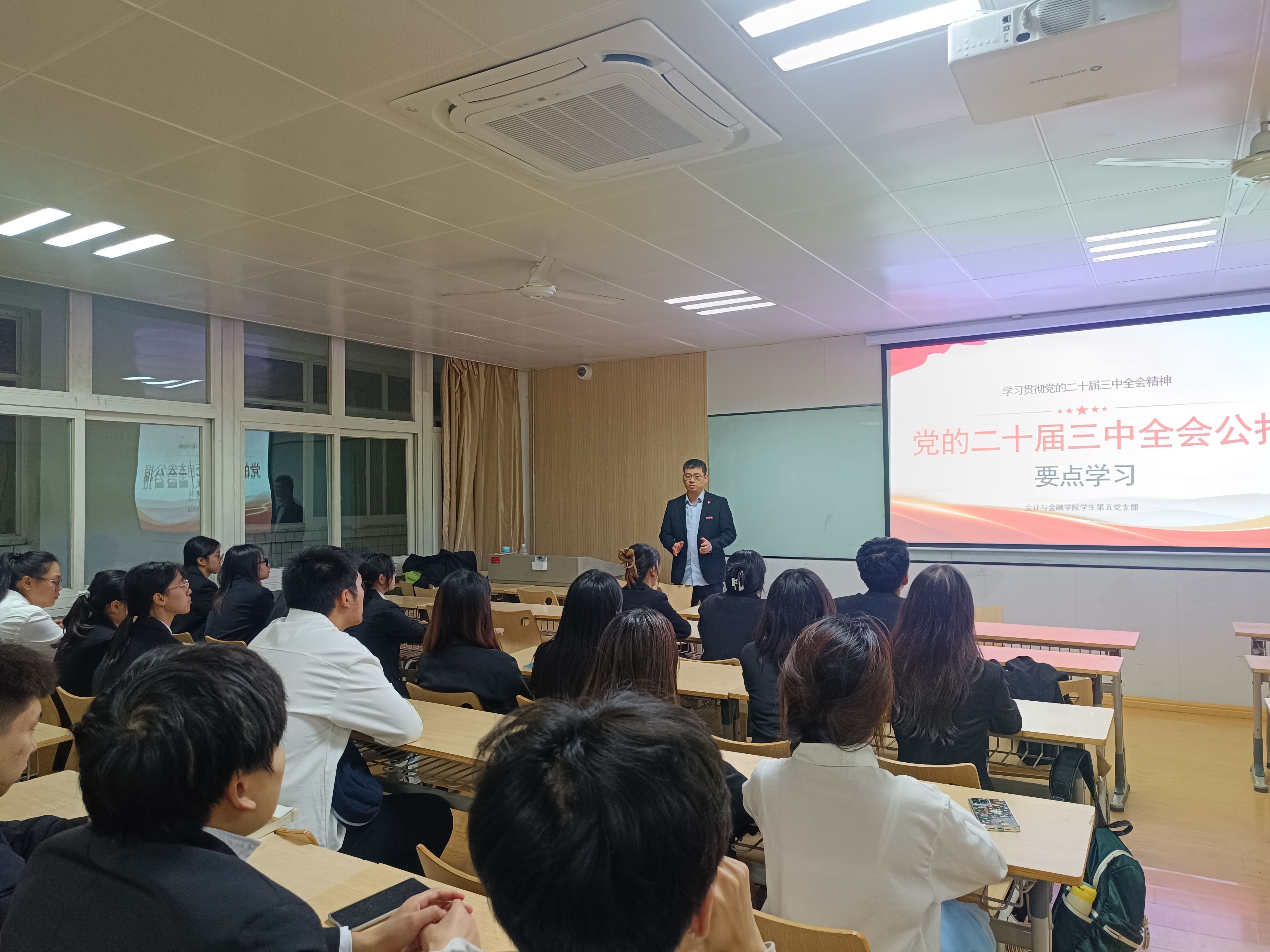 会计与金融学院学生第三党支部于博远楼2115会议室开展以“深入学习贯彻党的二十届三中全会精神”为主题的支部书记讲党课活动。支部书记李梦丽老师围绕“全面深化改革”进行了详尽阐述,深刻剖析了新时代在党的带领下社会的发展与前行道路。同时解读了《中共中央关于进一步全面深化改革、推进中国式现代化的决定》中的关键信息,强调了党员干部们在当前的大背景下,必须时刻保持清醒的政治头脑,坚定党的领导方向,贡献自己的力量。