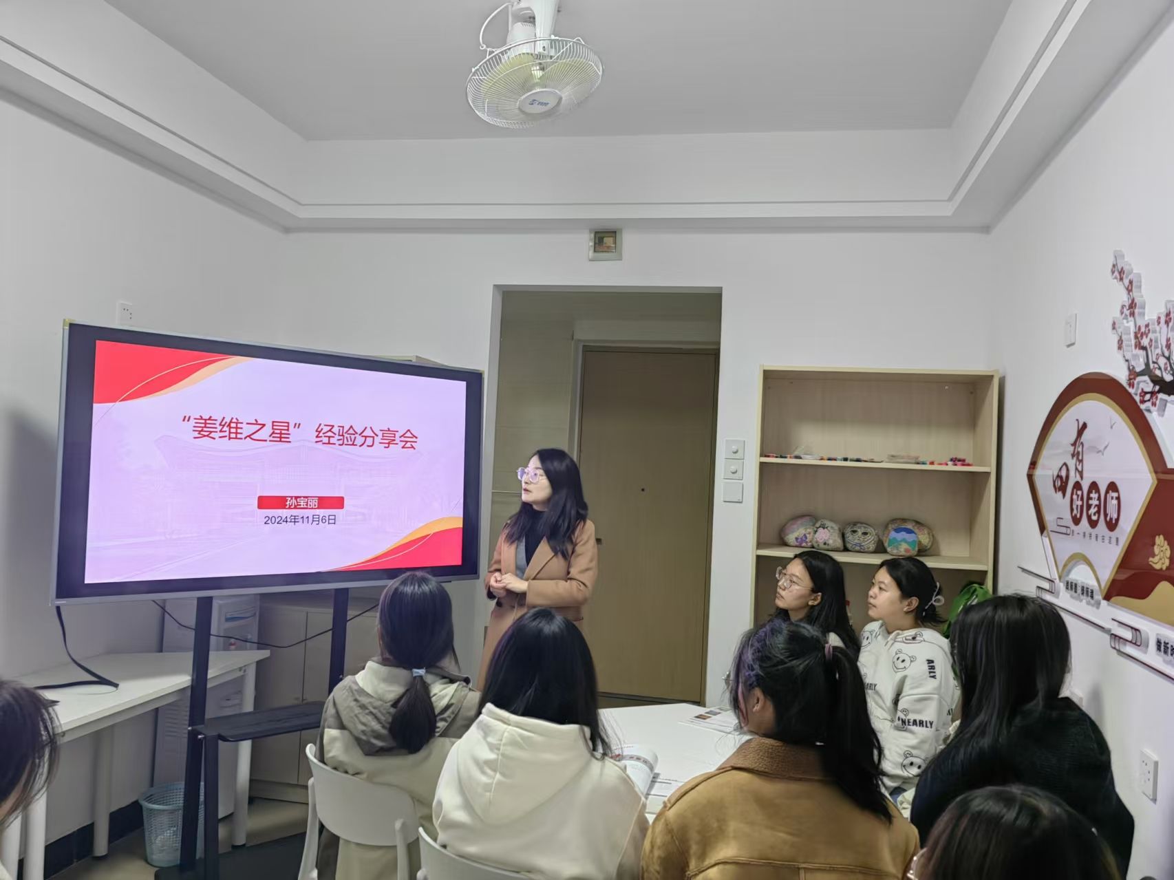 为进一步推动“姜维之班”创建深入开展,扩大“姜维之班”创建范围,深化“姜维之班”创建影响,进一步培育和践行社会主义核心价值观,会计与金融学院党务专干孙宝丽老师在至诚社区12号公寓导师工作室开展“姜维之班”创建经验分享交流会。本次活动由院级“姜维之班”创建提名班,人力资源管理2201班党员学生代表崔明星同学为大家做分享,参加活动的学生由各学生党支部代表及班级团支书代表组成。