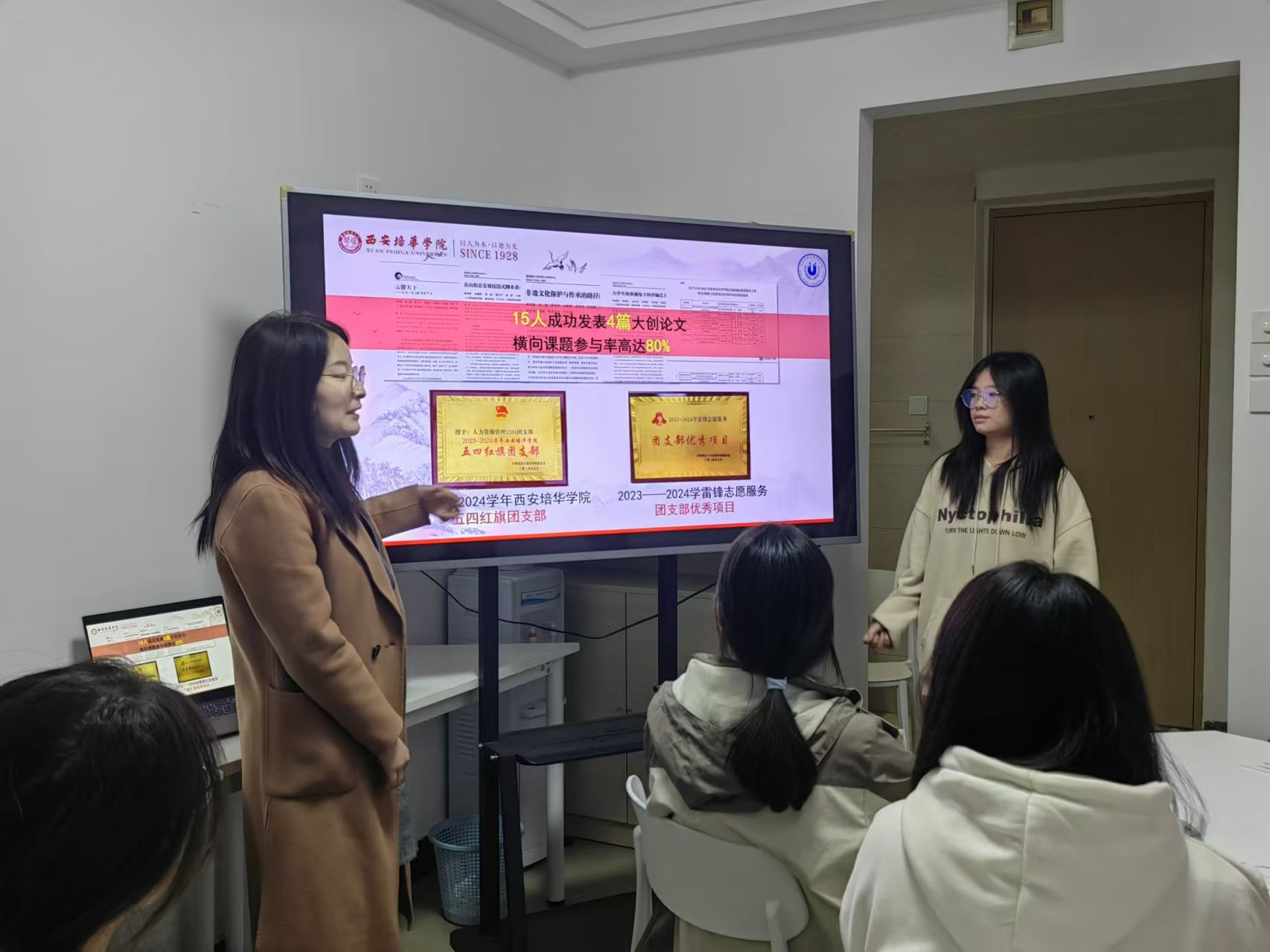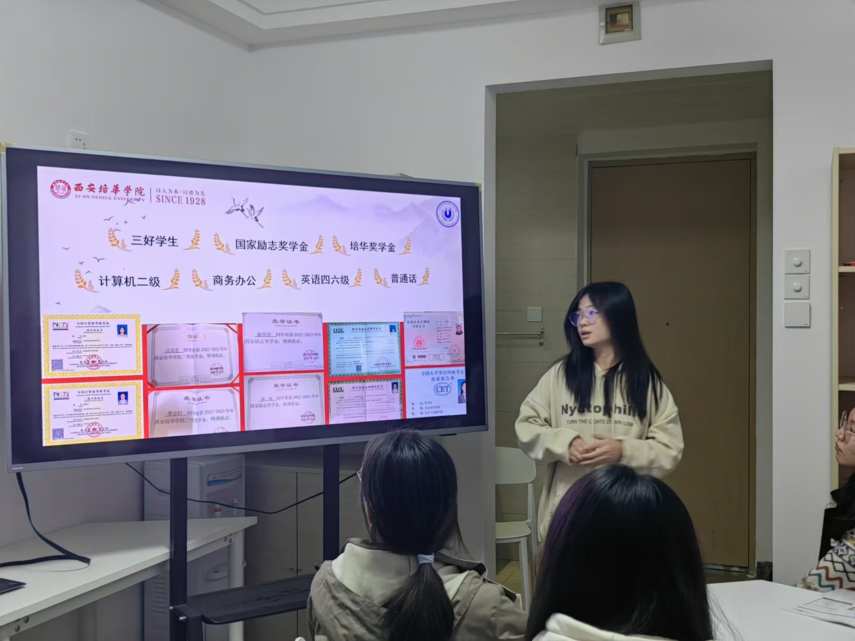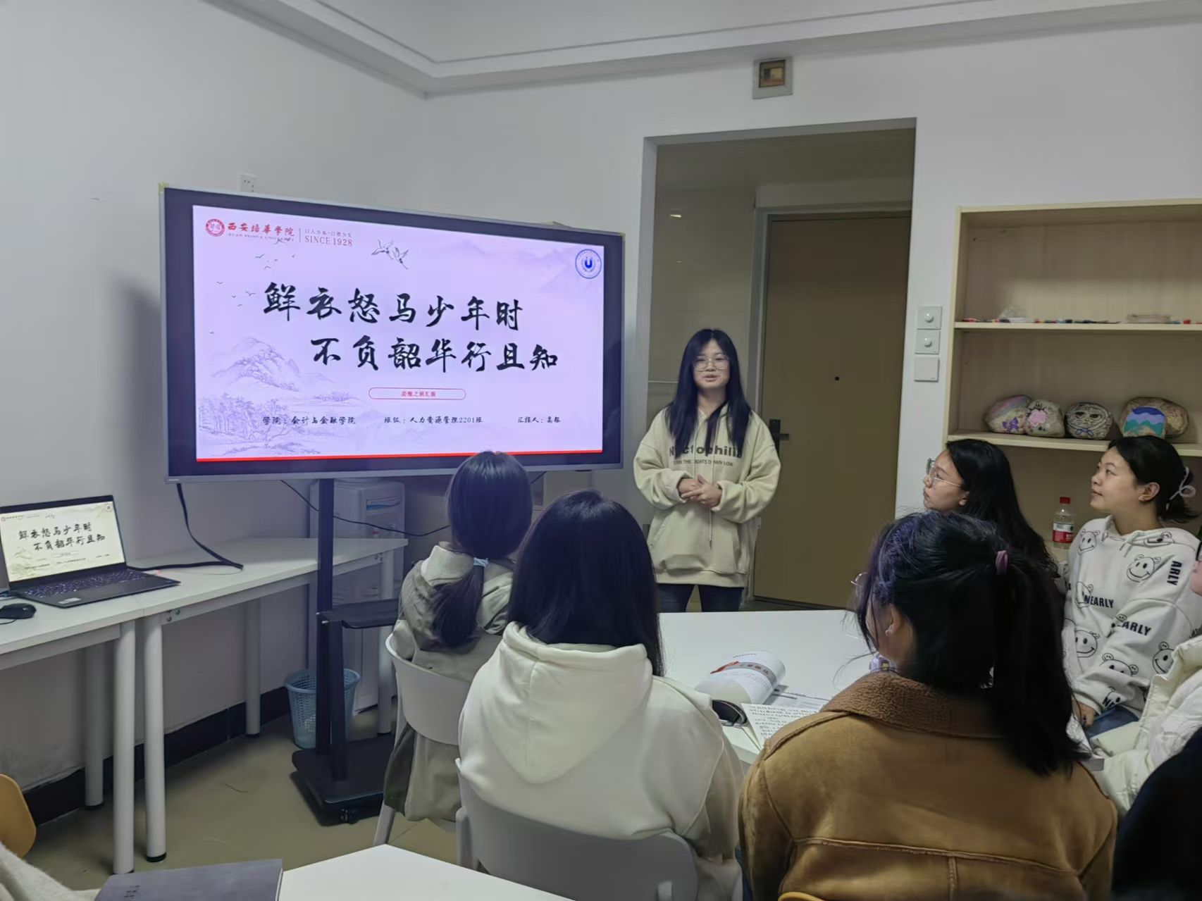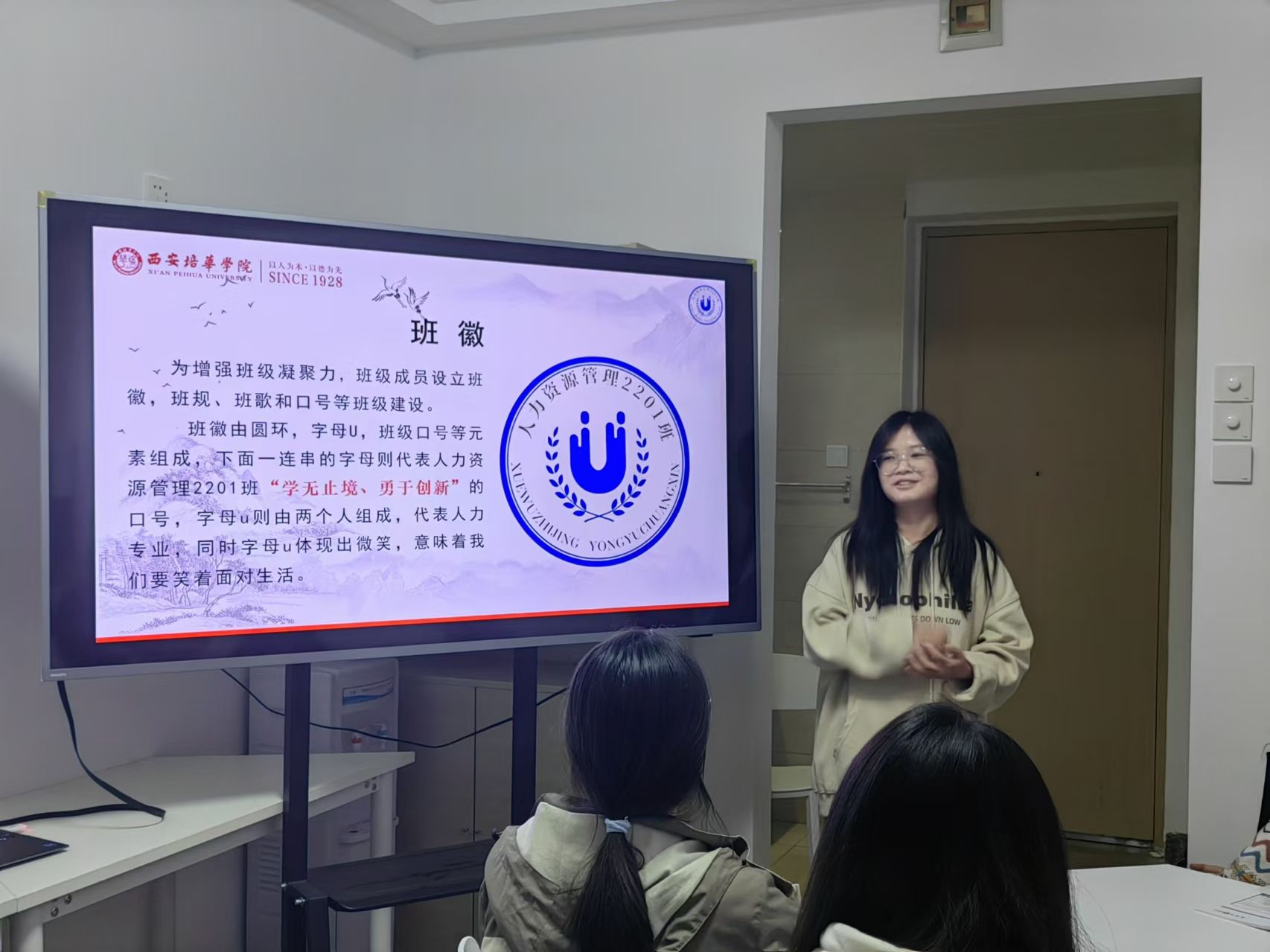 接着由人力资源管理2201班崔明星同学向大家介绍了本班近两年半以来创建“姜维之班”的历程,并分享创建经验,可总结为以下四点:一、坚持立德树人这一根本任务的引领,班级始终抓好党建带团建,团建推班建;二、班级深入贯彻落实“班团一体化”机制,加强班级学风建设;三、班级营造“学习先进、看齐榜样”的班级氛围,四、在社区建设方面,设立班级宿舍舍长制度,加强宿舍管理,推动一站式学生社区文化建设。