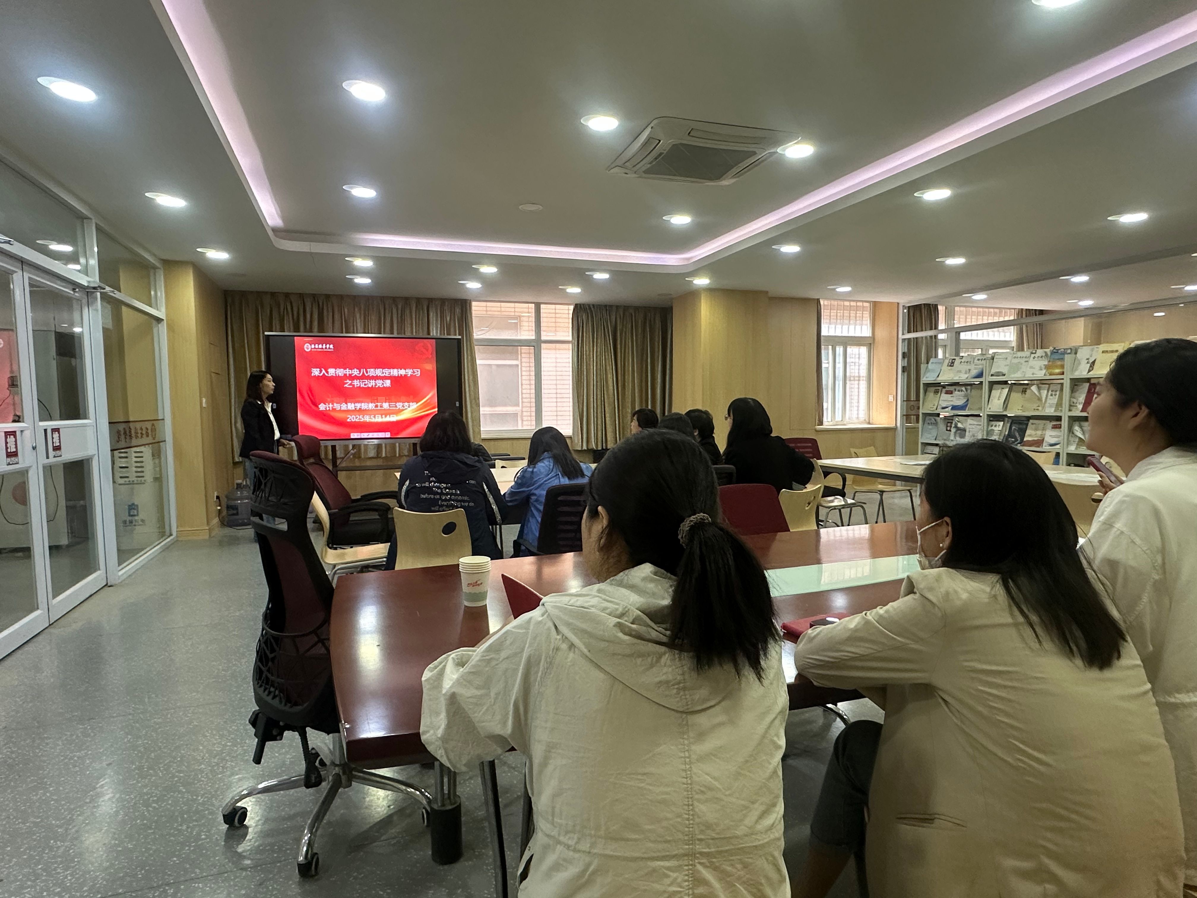 教工第三党支部书记段梦娟以“学深悟透八项规定,永葆清正廉洁本色”为题,通过组织支部成员学习相关文件和案例,让大家深刻认识到廉洁自律的重要性,增强了党员的纪律意识和规矩意识。