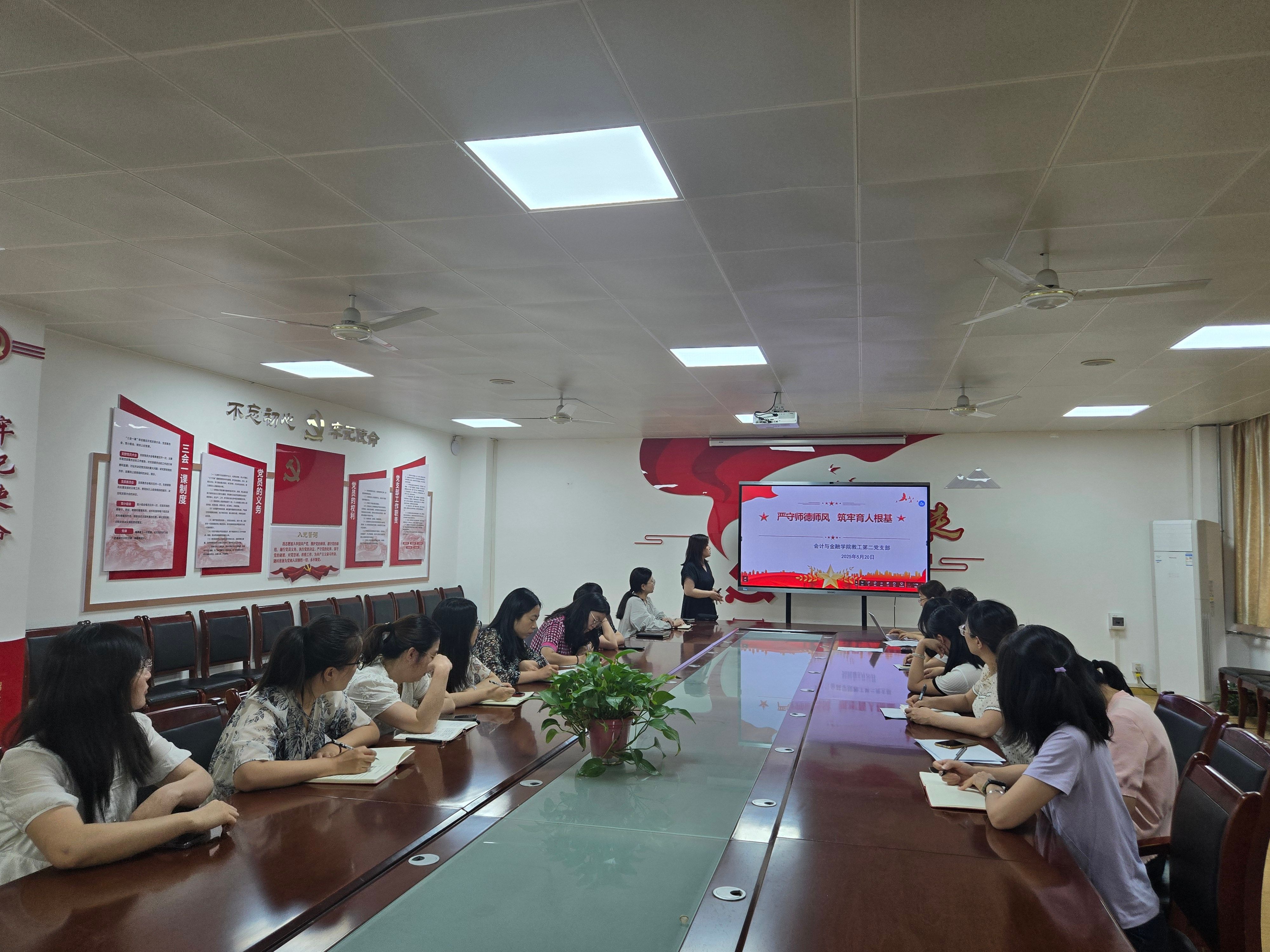 教工第二党支部书记原亚丽以“严守师德师风,筑牢育人根基”为题,进一步强调了师德师风建设的重要性,引导教师党员在教育教学中坚守初心,为培养德智体美劳全面发展的社会主义建设者和接班人贡献力量。
