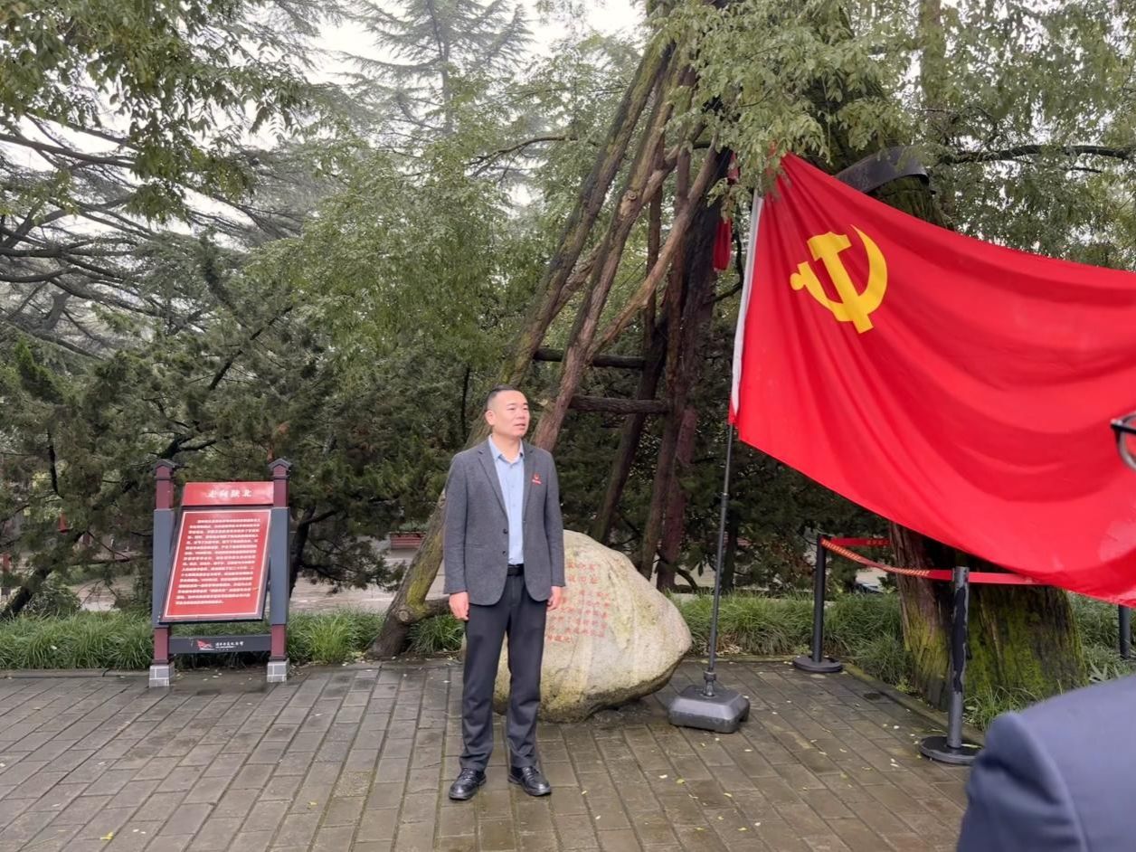 会计与金融学院党委书记兼行政副院长刘斌在渭华起义纪念馆内的古槐树下,为全体党员师生讲授了一堂生动深刻的思政课。这棵古槐树是渭华起义历史的“活见证”,枝干遒劲、根深叶茂,见证了革命先辈浴血奋战的峥嵘岁月,承载着忠诚于党、坚守信念的红色基因,是传承起义精神的重要载体。