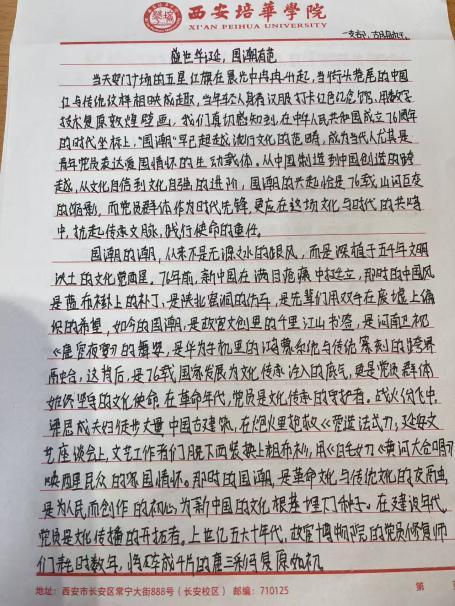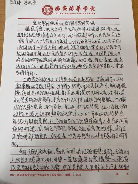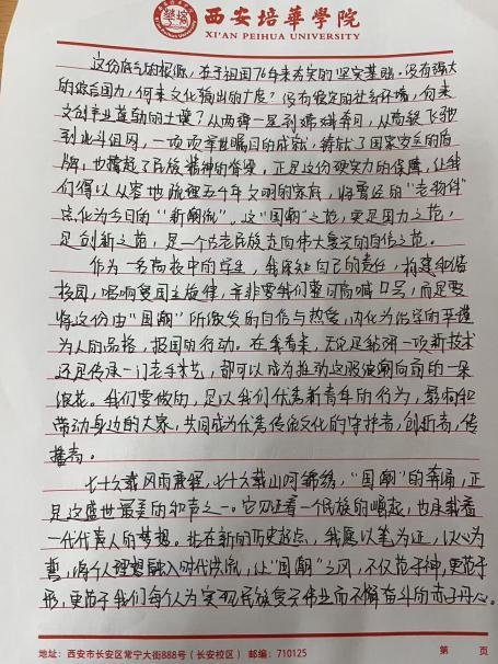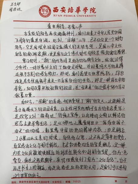 为庆祝中华人民共和国成立76周年,弘扬优秀传统文化,唱响爱国主旋律,构建和谐校园并坚定党员爱党爱国信念,西安培华学院会计与金融学院党委特开展“盛世华诞,国潮有范”主题迎国庆征文活动,旨在激发广大党员的爱国热情,凝聚奋进力量。