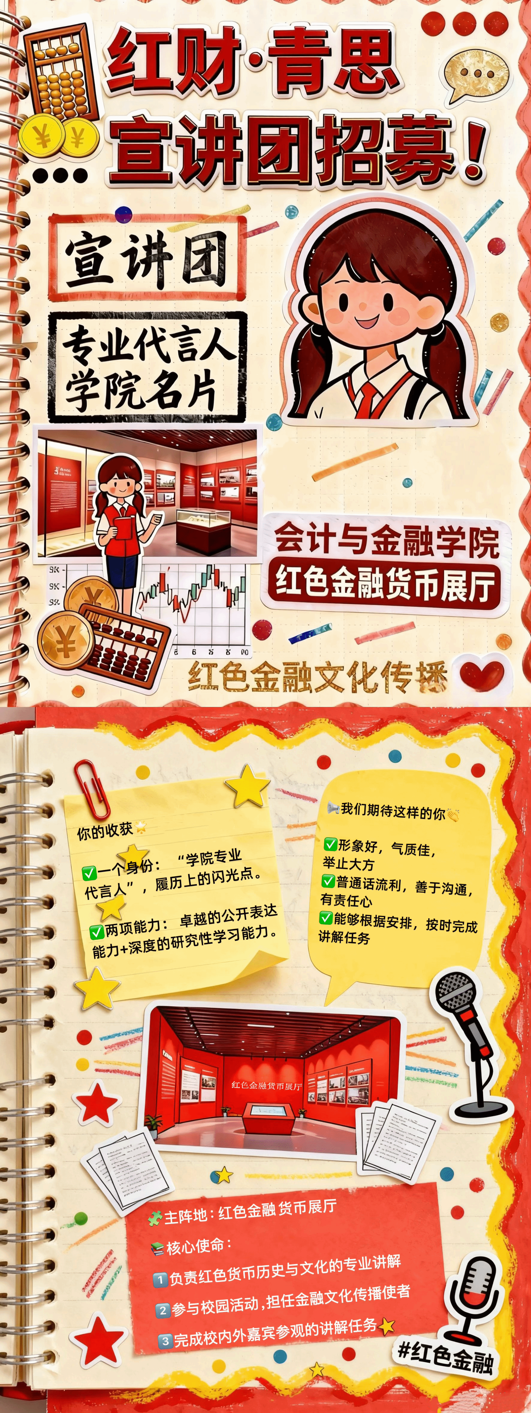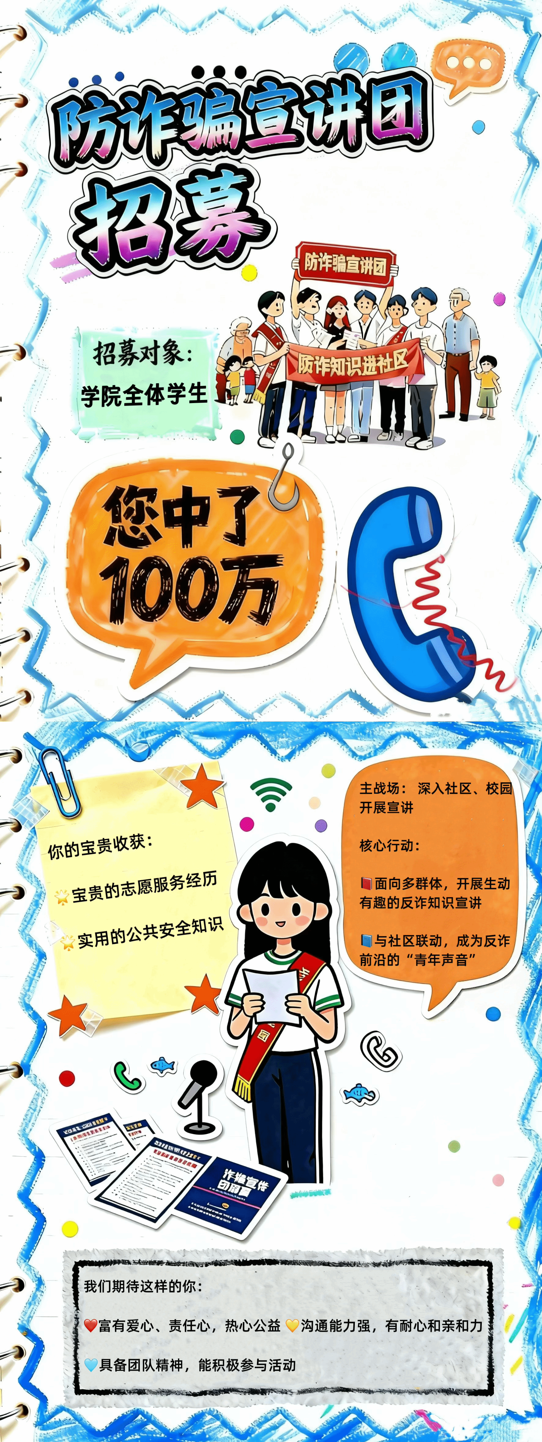 红财·青思宣讲团(专业代言人)与防诈骗宣讲团首次联合纳新,两大平台,两种成长,总有一个能点燃你的光芒!