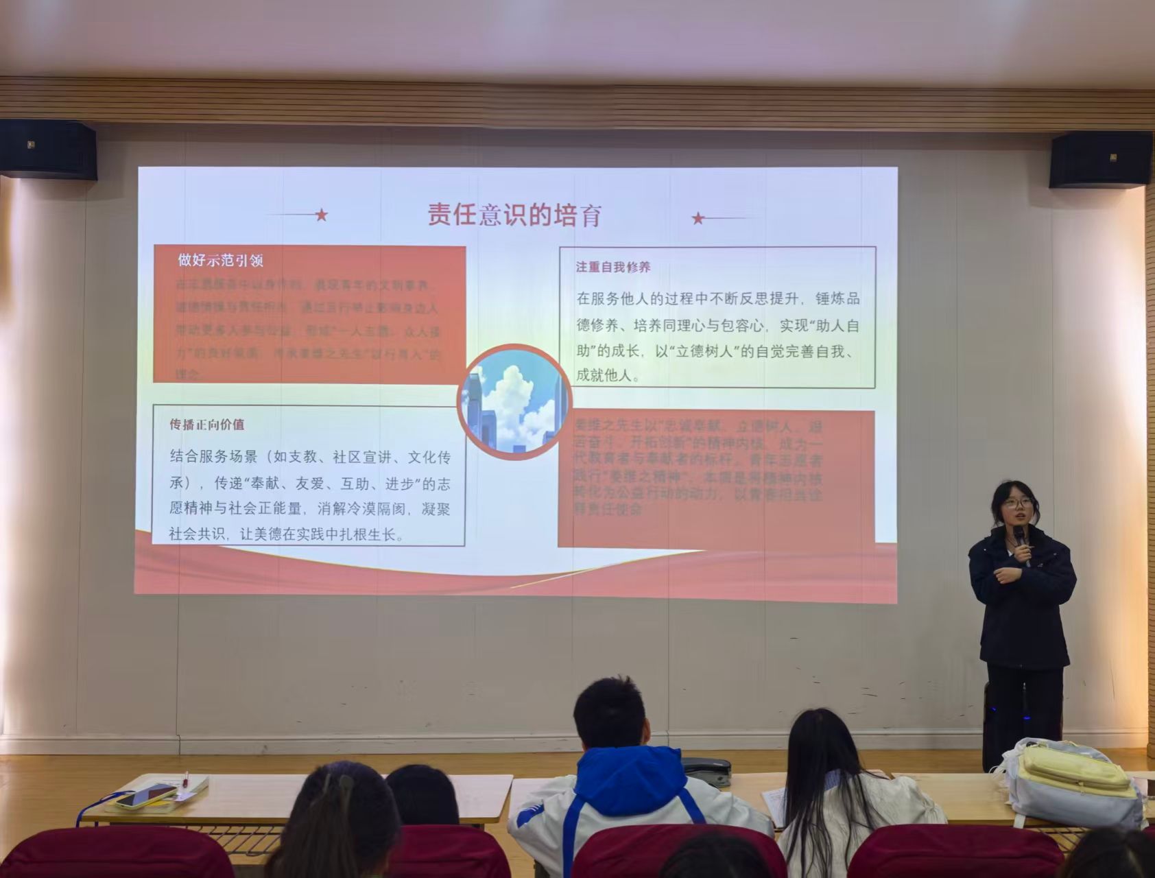 青年志愿者协会在团委副书记兼青年志愿者协会指导老师田晨统筹下,以“姜维之精神”为指引,第一期举办“责任与担当”主题培训;第二期开展“礼仪与服务规范”专项实训,实现“培训一人、带动一班、辐射一院”的倍增效应。