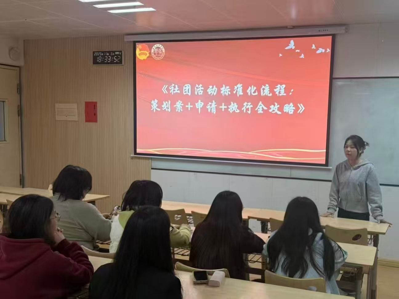 学生社团培训由社团指导老师郭若钶统筹,第一期举办“凝心聚力”工坊;第二期推出“活动全攻略”实训,实现“一份表格走完全流程”,培训后参与人数同比显著增长,活动平均筹备周期明显缩短。