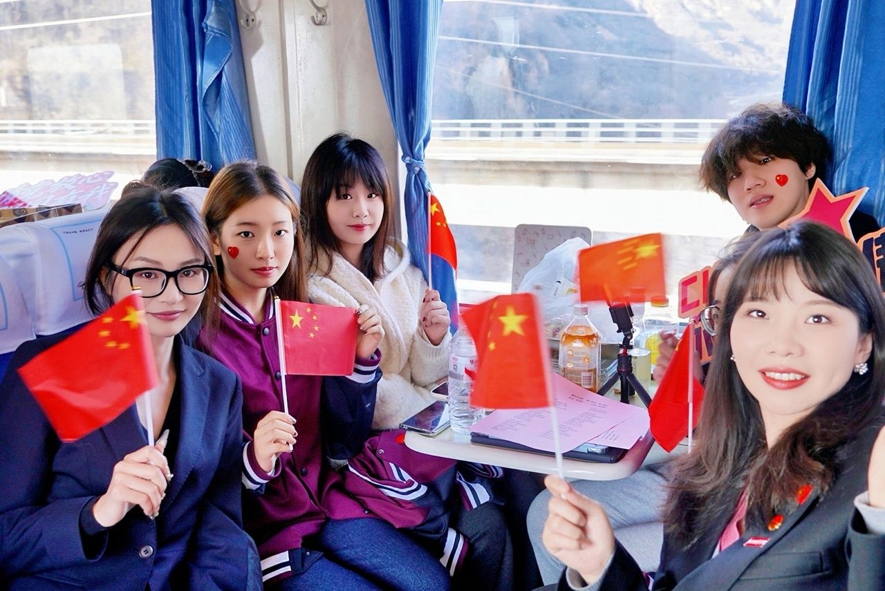 同学们从西安出发前往延安,在列车上开展红旗颂创新理论宣讲、烽火映初心,奋斗跨时代主题微课堂以及歌声中的思政课等活动,活跃了现场氛围。