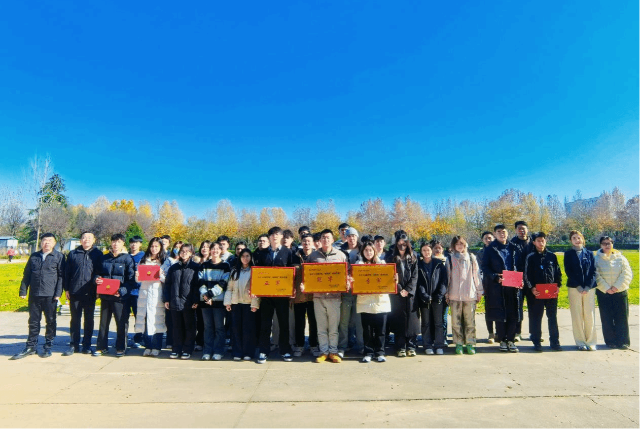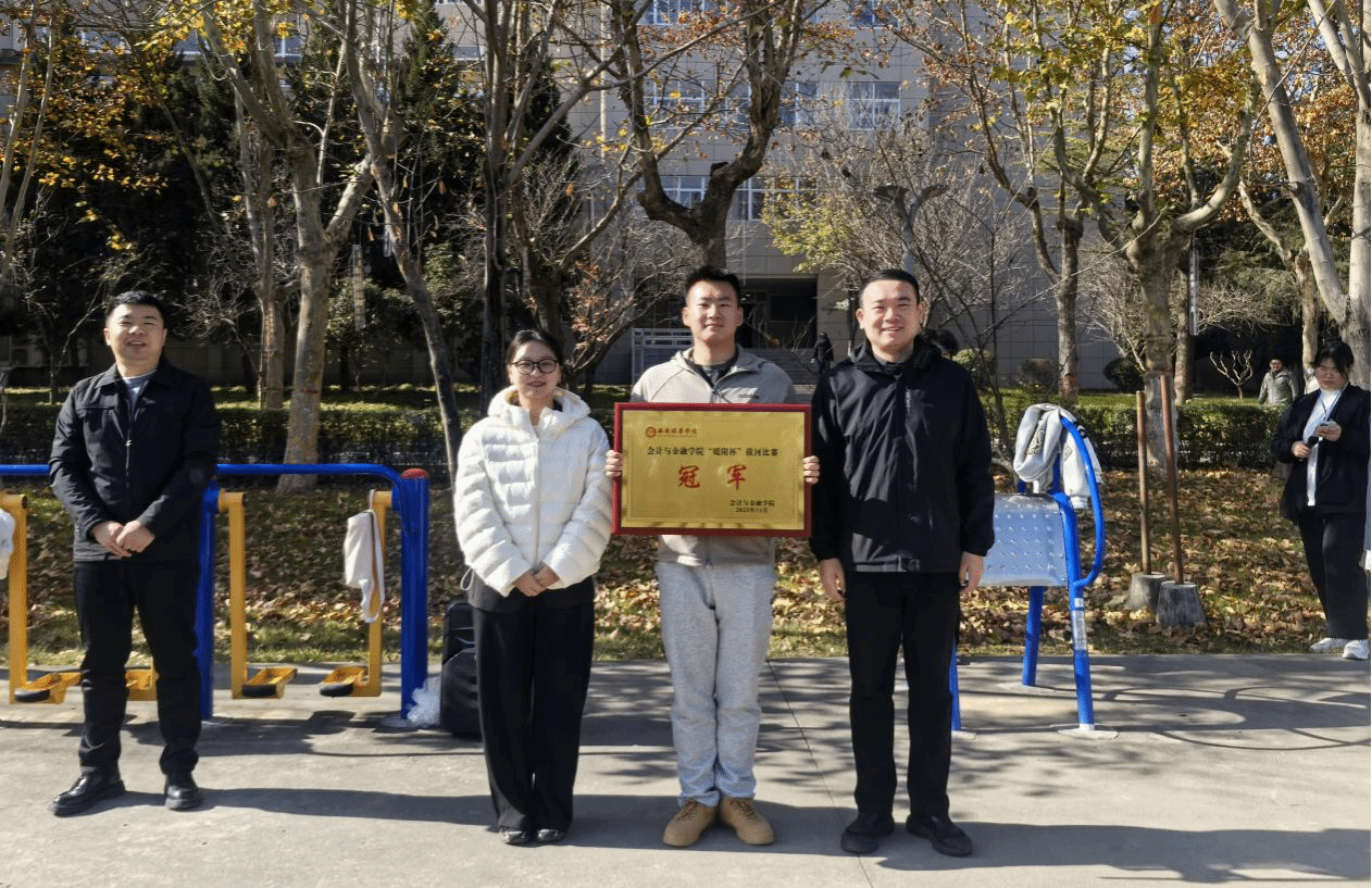 会计与金融学院党委书记兼行政副院长刘斌为拔河比赛冠军颁奖并与代表合影。