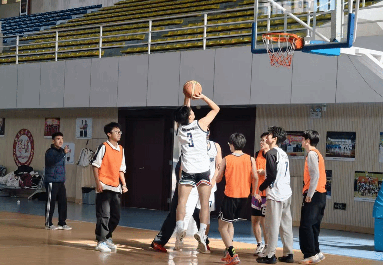 随着裁判一声令下,篮球场上、队员们默契配合、奋勇争先。球员们身着整齐队服,身姿矫健如猎豹,在球场上灵活穿梭、激烈角逐。抢断、传球、起跳、投篮,一系列动作行云流水,每一次精准命中都引来全场欢呼。