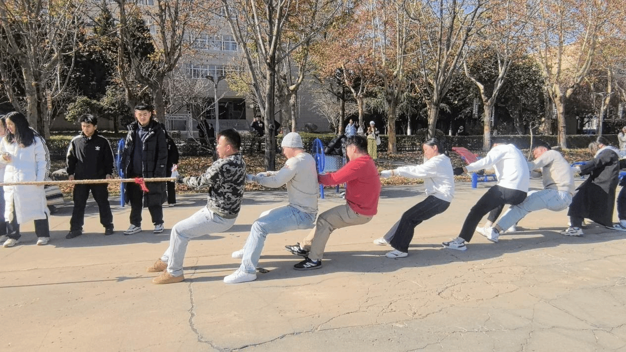 拔河赛场同样热血沸腾。各班级代表队身着统一服装,紧握长绳严阵以待。随着裁判哨声响起,队员们身体后倾、脚步扎根,紧绷的绳索承载着团队的信念与拼搏。场边啦啦队的呐喊声、加油声此起彼伏,每一句“加油”都化作前进的动力,让寒冬赛场暖意融融。