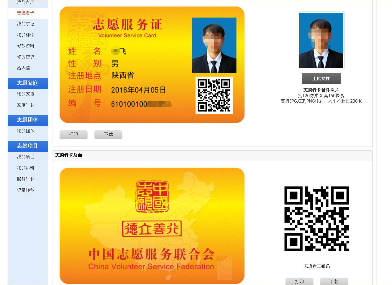 注册成功后上传照片,你会拥有自己的志愿服务证
