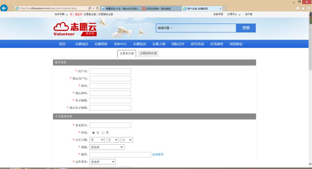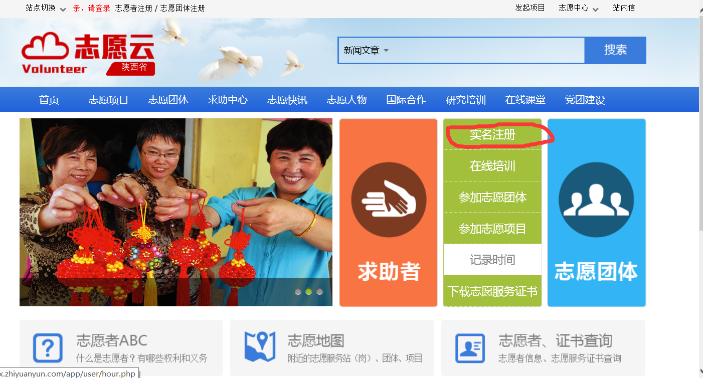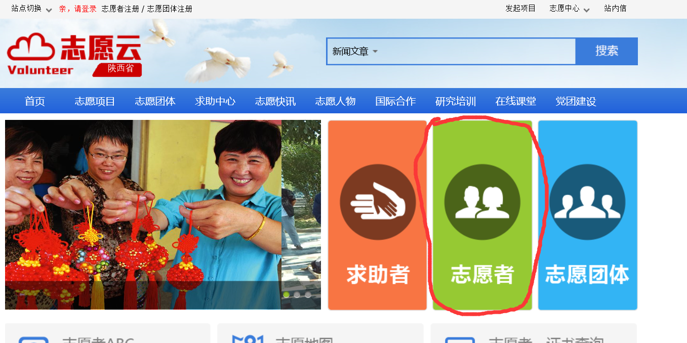 9,注册成功后请登录至首页,在网站内搜索框选择志愿团体