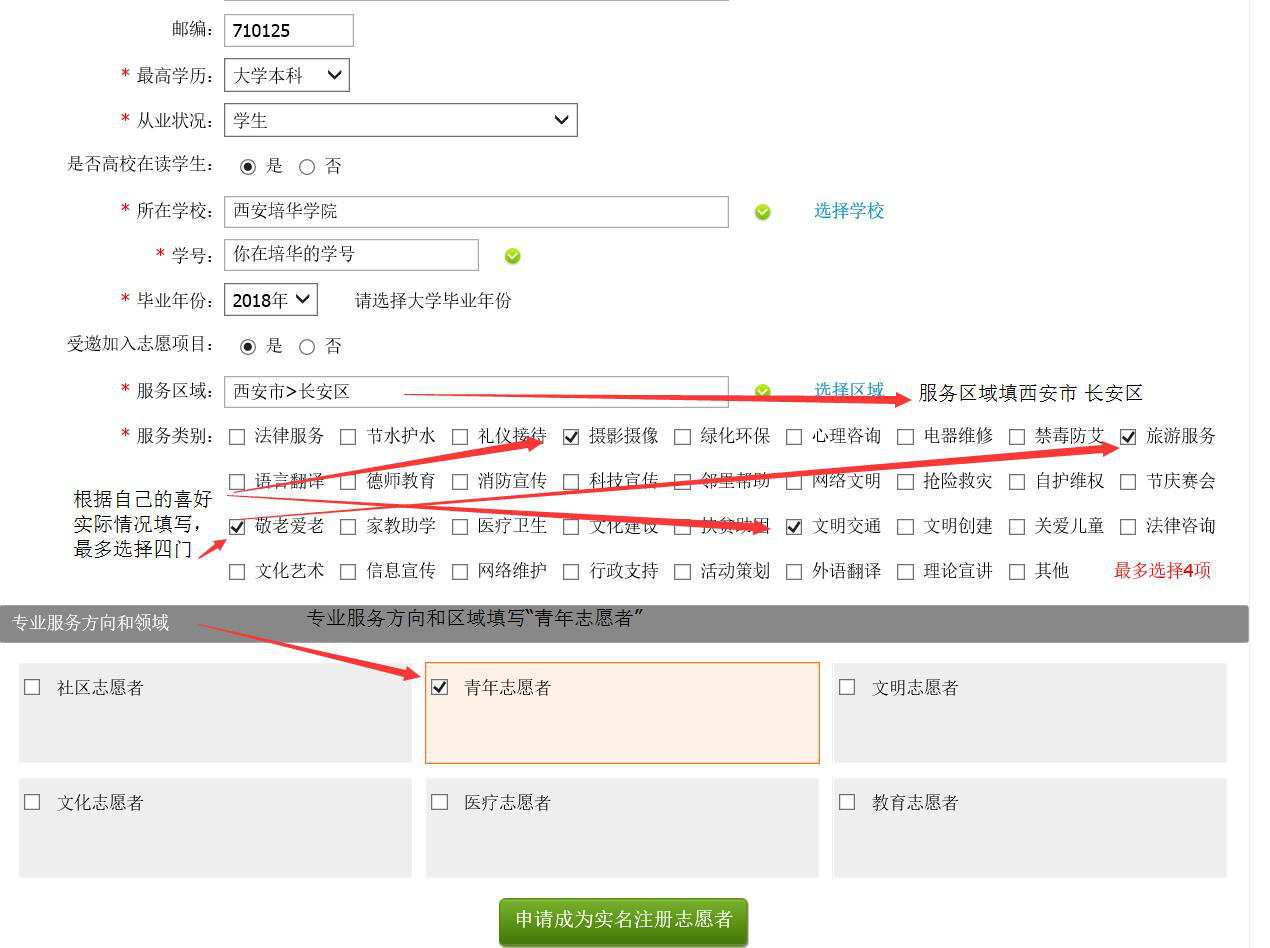 为弘扬我院“厚德育人”理念,营造浓厚的志愿服务社会氛围,加强对学生的感恩教育和社会责任感教育,鼓励学生积极参加社会公益活动和义务劳动,西安培华学院青年志愿者协会开展志愿服务活动。希望同学们发扬雷锋精神,勇做志愿先锋,积极参加志愿活动。现将志愿者注册流程公布如下: