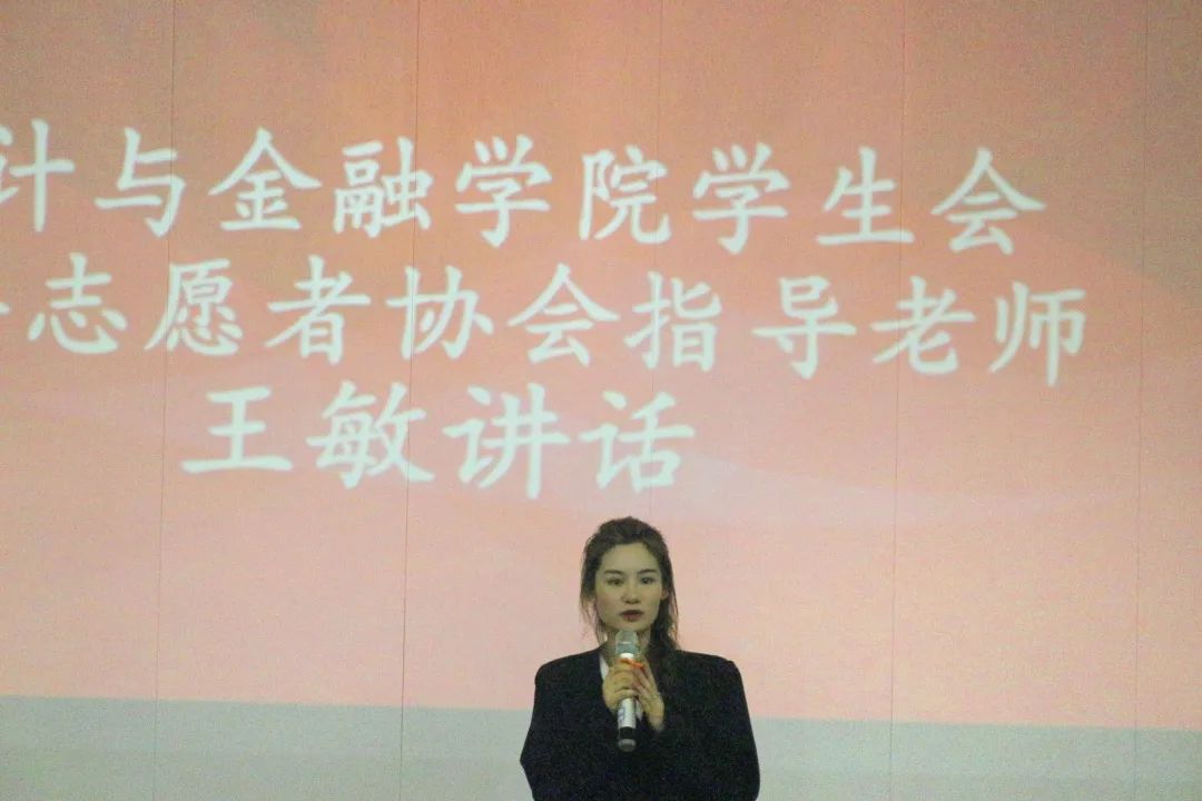 会计与金融学院学生会青年志愿者协会指导老师王敏老师讲话