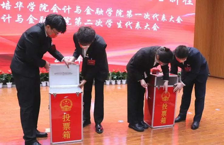 由总监票员覃芸芸同志主持选举工作,投票选举共青团西安培华学院会计与金融学院第一届委员会委员、西安培华学院会计与金融学院第二届学生委员会委员。