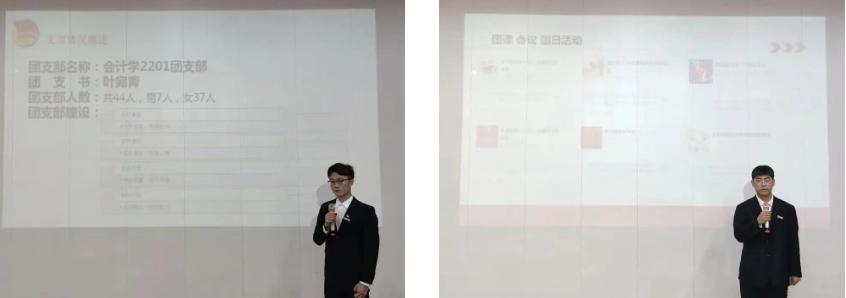各团支书通过总结支部推优、支部团日活动、“青年大学习”的开展情况、支部组织建设、社会实践活动、班风学风建设等方面取得的成绩等方面进行了展示;同时反思了日常工作中有待提高的方面,汇报了日后团支部的发展方向及未来计划。