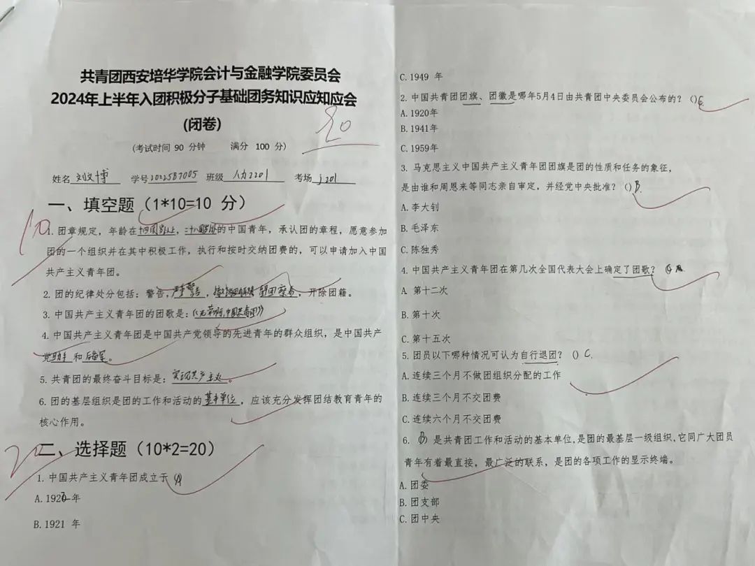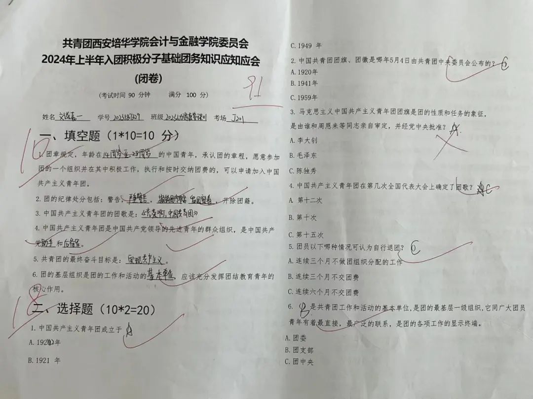为深入贯彻习近平总书记关于青年工作的重要思想,全面落实从严治团要求,规范团员发展程序,加强团员队伍建设,规范发展团员工作,严格把好团员发展“入口关”,会计与金融学院团委于4月23日在博远楼J201教室开展2024年上半年基础团务知识测试。