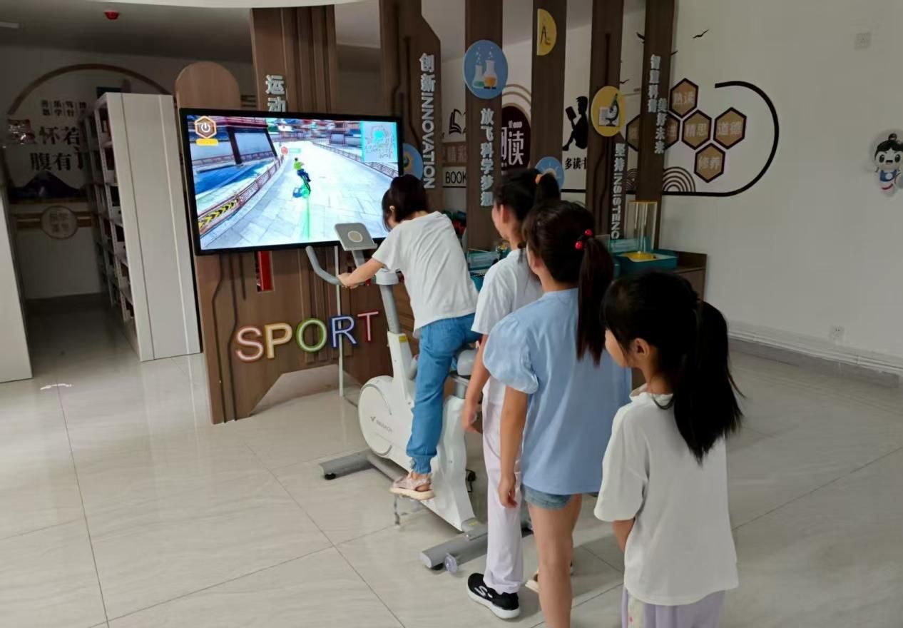 智能骑行环节成为今日“科技亮点”。孩子们登上智能健身车,大屏同步展开虚拟骑行场景,专业设备与数字技术融合,打造突破空间的趣味赛道。在“穿梭” 风景的沉浸式体验中,锻炼下肢力量、提升心肺功能,将体能训练转化为科技冒险,实现了“运动+知识+科技”的多元成长。