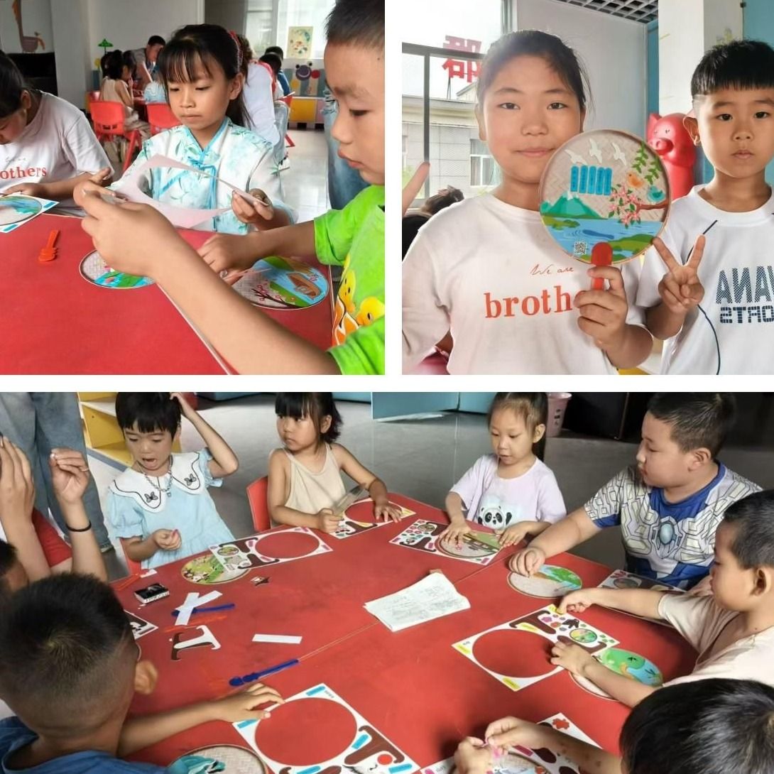 离开田野,实践队与社区孩子们的手工扇子活动同样温馨。素白扇面与五彩画笔备好,队员们温柔引导:“把夏天的样子画下来吧!”队员们俯身指导调色,用镜头定格专注瞬间,活动室里笑语不断。当孩子们挥动独一无二的扇子,清凉风里满是成就感,社区工作人员点赞:“既锻炼动手能力,又传递了温暖。”