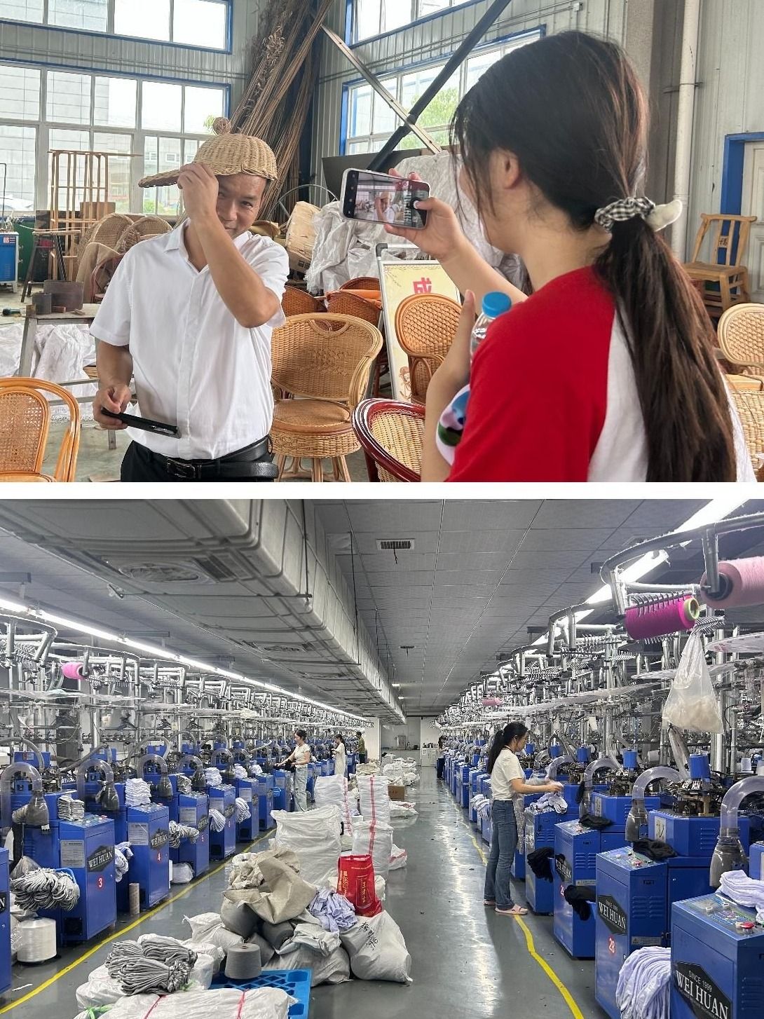 离开藤编基地,实践队来到安康菲亚特纺织科技有限公司,这里的故事同样由社区专职工作者提前“剧透”:“咱们汉阴的纺织业,从早年的小作坊纺线,到如今菲亚特公司的现代化袜子生产线,走的是一条不断升级的路。”