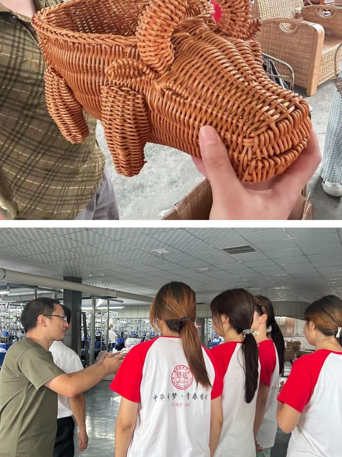 “大家看,咱们的藤编产业可不是一开始就这么红火的。”紫云南郡社区的专职工作者热情地向实践队介绍,从最初零散的手工编织,到后来整合资源成立社区工厂,再到创新推出“社区工厂+家庭作坊”模式,藤编产业的每一步都浸透着探索的汗水。