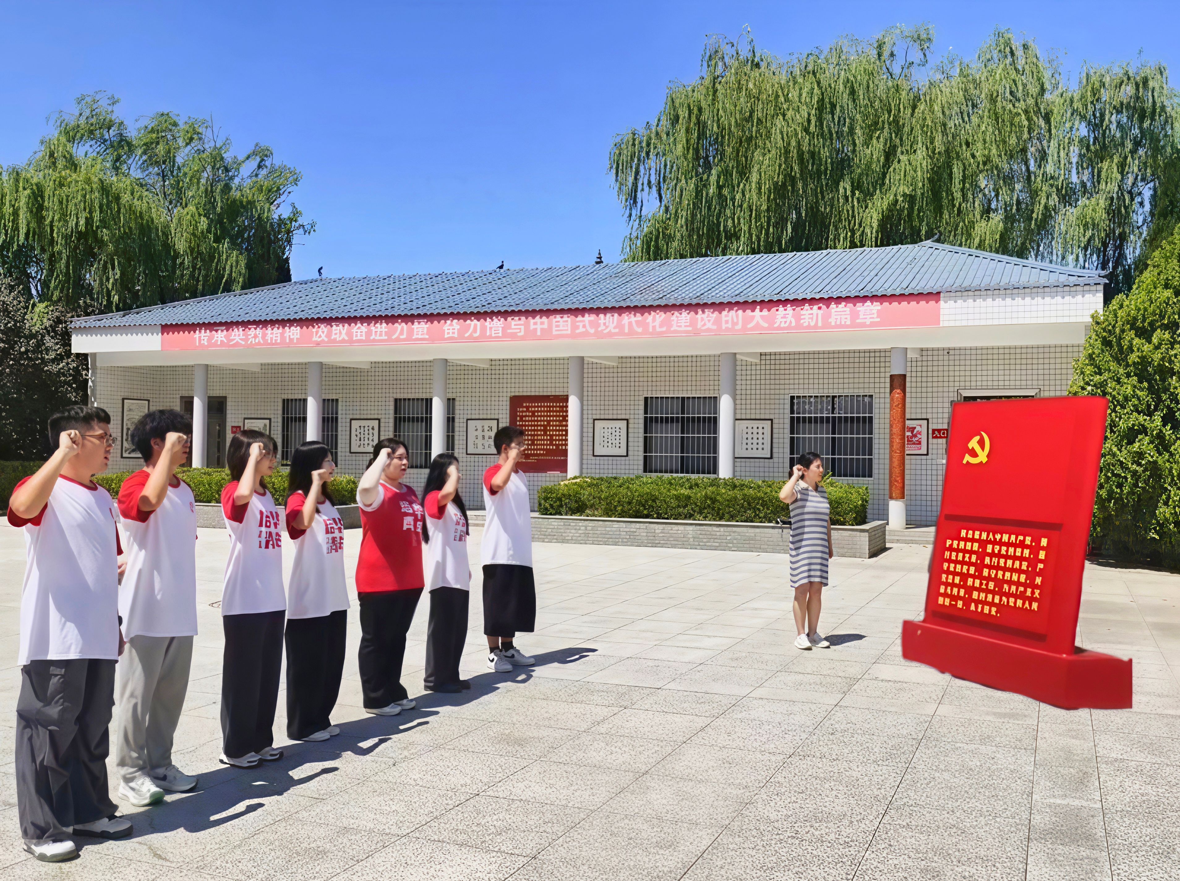陵园入口,“荔北战役革命烈士永垂不朽”的纪念碑在阳光下矗立,碑身镌刻着1948年战役中牺牲的英烈姓名——当年10月,西北野战军为解放大西北发动荔北战役,数万将士以5000余人牺牲为代价歼敌2.5万,彻底粉碎国民党军西逃企图。碑前花坛里野菊与松柏相依,恰似战士们用热血浇灌的和平之花,将七七事变全民抗战的怒吼与解放战争冲锋的号角,在信仰的长河里悄然衔接。此刻实践队成员们面对先烈英灵郑重举拳,入党誓词字字千钧,既是对碑铭忠魂的深切告慰,更是灵魂深处的赤诚洗礼——先辈在荔北大地用热血书写的壮丽篇章,正化作今朝青春誓言,接过历史接力棒守护山河永安。