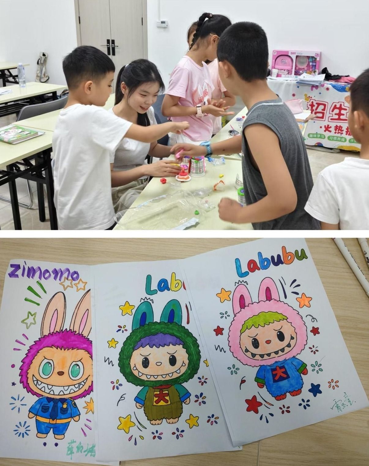 身到画架前,蜡笔在纸上蹭出暖暖的色块。“拉布布的耳朵要圆圆的!”“还要给它戴蝴蝶结!”孩子们七嘴八舌地出主意,笔下的卡通形象歪歪扭扭,却藏着最纯粹的想象——有的拉布布抱着星星,有的踩着云朵,连眼睛都画成了亮晶晶的爱心。