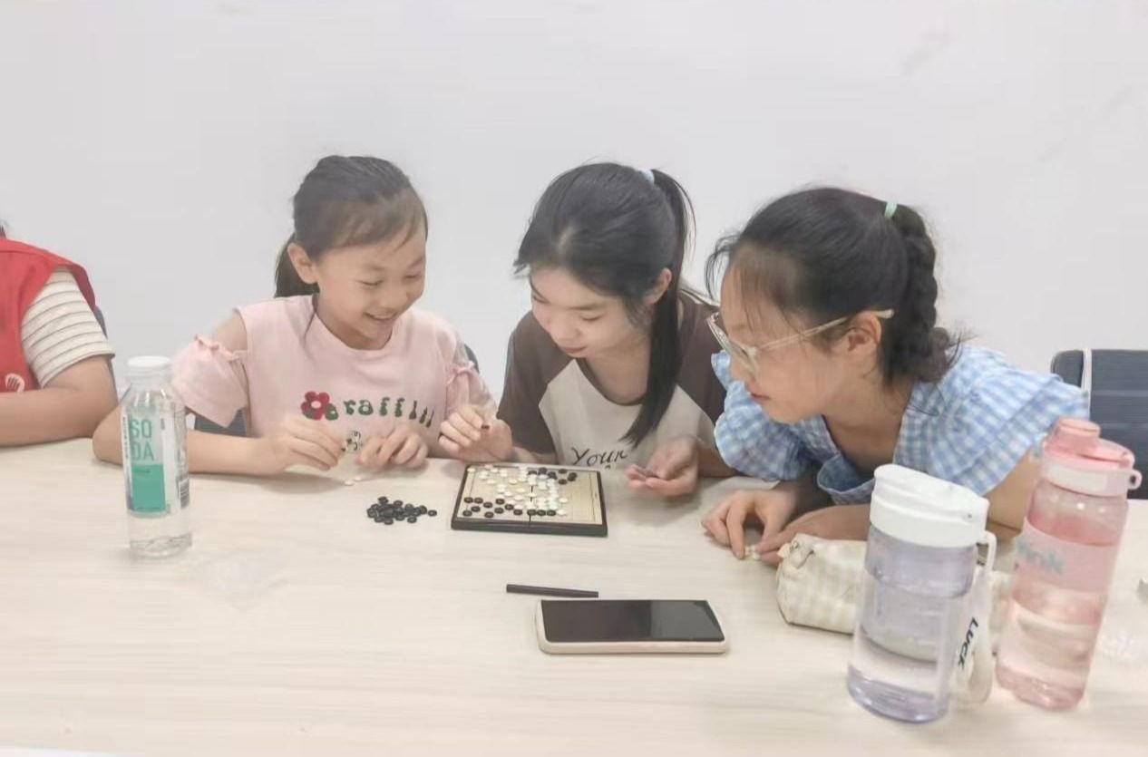 教孩子们下围棋时,总被他们认真的小模样逗笑。小手捏着棋子悬在半空,眉头皱成小老头似的,嘴里还念念有词:“这里!要把它围起来!”