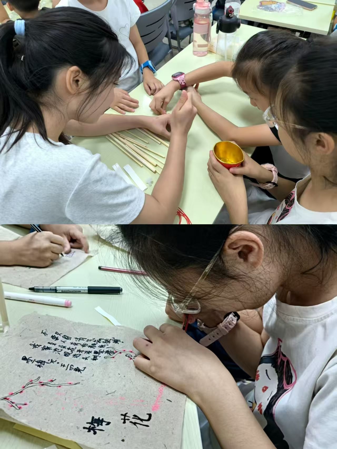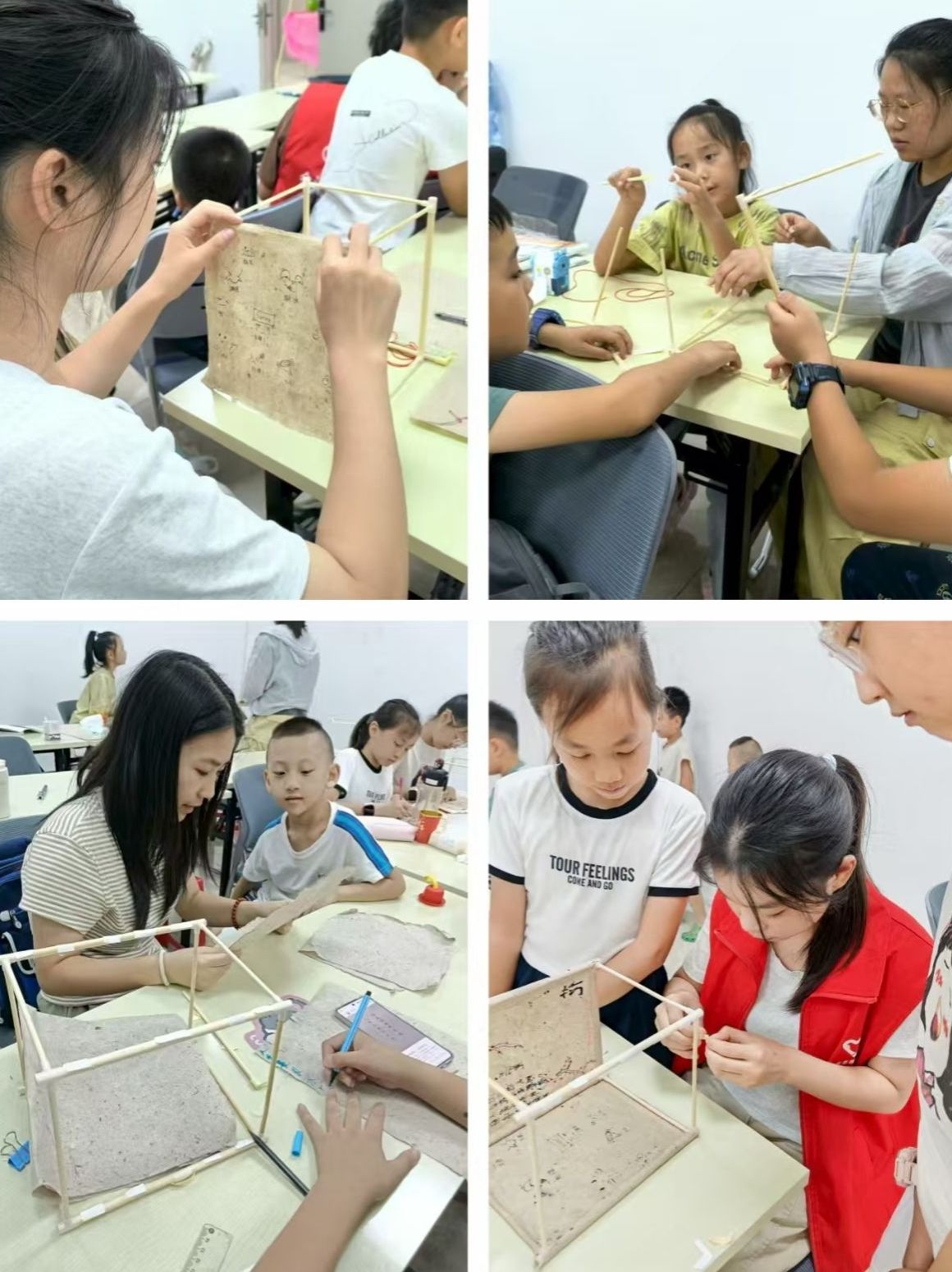7月15日,楮心筑梦队志愿者走进社区美育课堂,开展以“古法造纸与文创创作”为主题的实践活动,将国家级非物质文化遗产——楮皮纸技艺带入孩子们的世界。孩子们在志愿者指导下亲手制作楮皮纸灯笼,感受千年非遗温度,为传统文化注入新活力。