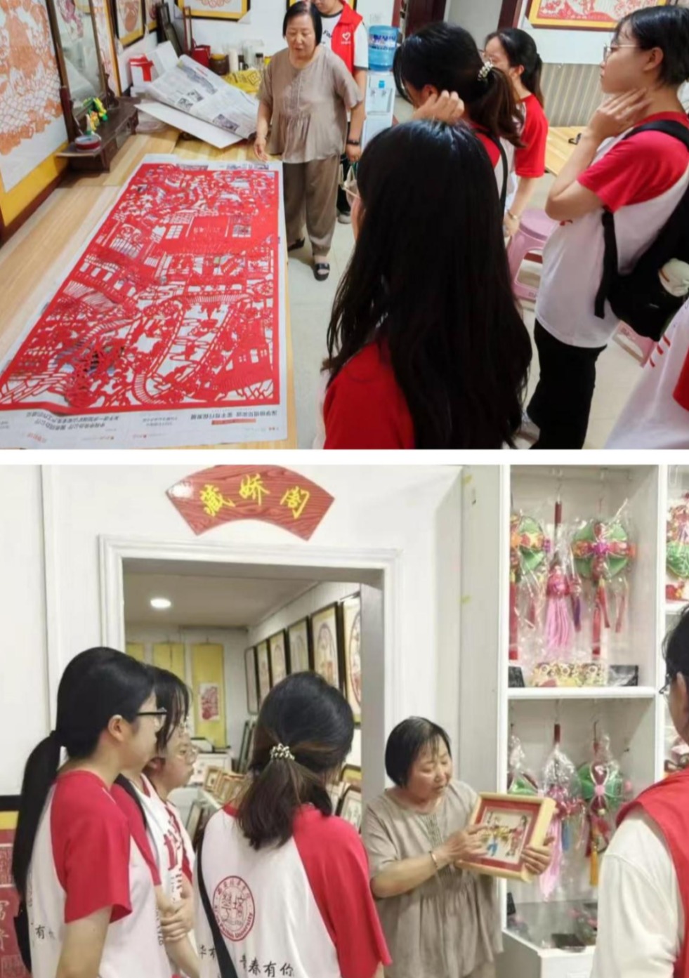 在省级非遗纸塑窗花传承人赵焕能的工作室,满墙作品令队员们惊叹——十二生肖灵动鲜活,《清明上河图》局部精细恢宏,“梦娃”剪纸传递“善孝勤俭”的家国情怀。赵老师现场演示包、缝、扎等技法,队员们跃跃欲试,红纸翻飞间体悟“窗格上的木偶戏”魅力,每一刀剪刻都是对土地的深情,我们要让非遗‘活’在当下。