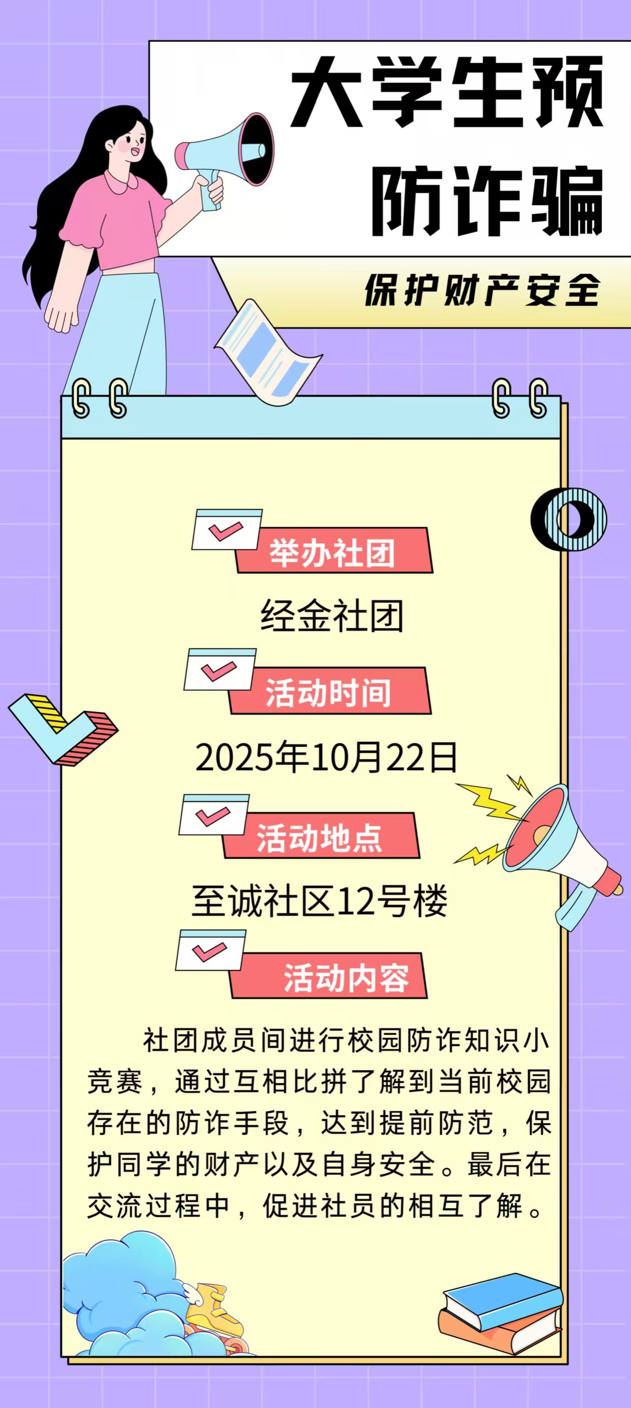 经金社团以趣味竞赛为载体解锁校园防诈技能,在守护财产安全的同时,让社员在知识交锋中筑牢反诈防线、增进彼此情谊。