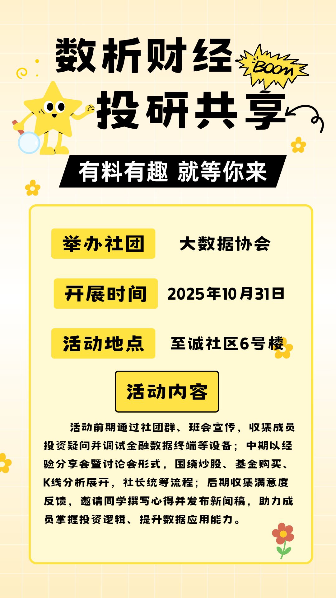 大数据协会专属投研之旅即将启程!从收集投资疑问到深度经验分享,全程带领成员解锁投资逻辑,稳步提升金融数据应用能力,向着专业投研能手迈进。
