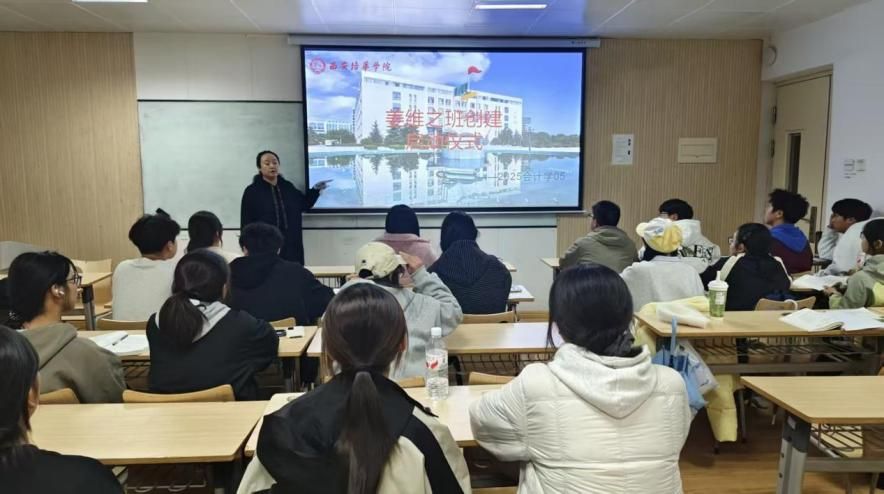 2025会计学05班44人到场举行“姜维之班”创建启动仪式,辅导员王思思老师出席指导。王思思老师在仪式上率先介绍了“姜维之班”的历史渊源与深刻内涵。她指出,该班级以姜维之老校长精神为核心,旨在强化思想政治教育、提升人才培养质量,同时详细说明了创建程序、具体要求及成功创建后的优势,让同学们对创建工作有了全面认知。随后,针对创建过程中可能遇到的问题,王思思老师结合往届学长学姐的实践经验,进行了前瞻性解答。