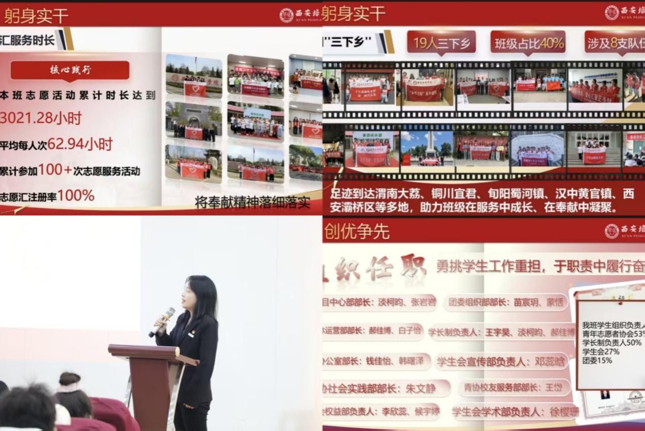 学业导师马艳老师对各班级汇报进行专业点评。她从“理念落地”“成果实效”“可持续性”三个维度出发,既肯定了各班级结合专业特色开展创建工作的亮点——如部分班级将会计专业知识与志愿服务结合,为社区居民提供理财咨询;也针对性地提出改进建议,如建议部分班级进一步细化成果数据、强化班级品牌建设,为班级后续发展指明方向。