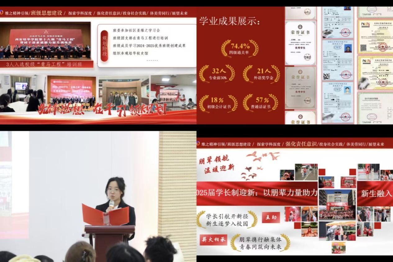 为传承姜维之先生“人无全才,人人成才”的教育理念,深化“为党育人、为国育才”的育人实践,2024-2025学年西安培华学院会计与金融学院“姜维之班”创建成果展示暨总结评审大会于2025年10月27顺利召开。学院师生代表齐聚一堂,共同见证创建班级的成长成果,凝聚育人工作的新共识。
