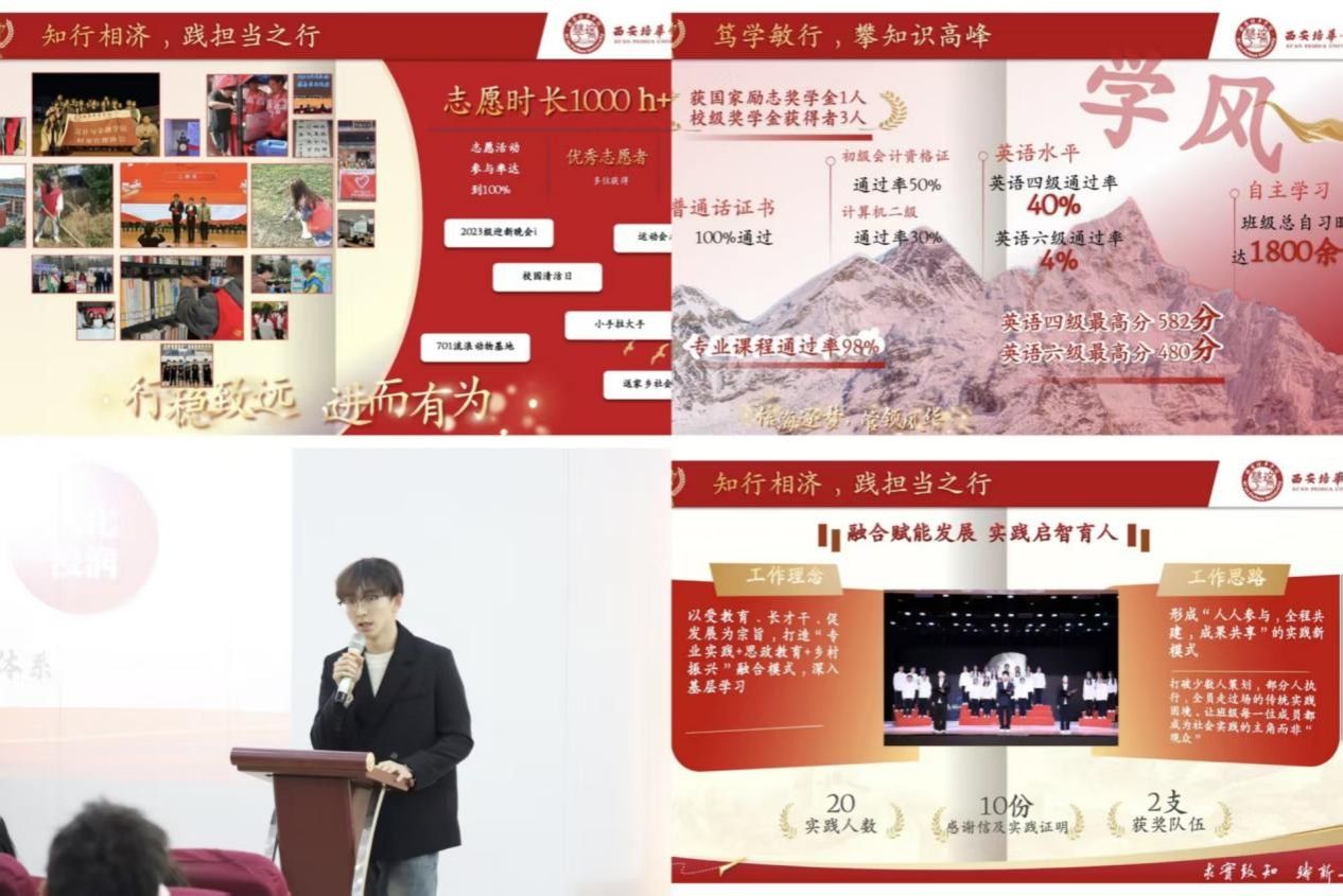 会计学2401班51名同学以“奉献、执着、创新、坚毅”的姜维之精神为引领,构建“1+3+X”平台,通过双师驱动、班团一体化管理,实现德智体美劳全面发展。思想建设上,开展主题学习、“青年大学习”等14场活动,13人成为入党积极分子,班级公众号发布51篇推文传播维之精神,总浏览量达8785余次;学业建设中,通过多级指导、分享会等助力学业,四级通过率74.4%,32人跻身专业前30%,21人获外语奖学金,初级会计证书持证率18%,学科竞赛获省级银奖1项、校级奖3项;组织参与上,15人加入院级组织、9人加入校级组织;实践服务上,51名注册志愿者累计服务1726小时,开展多样志愿活动诠释奉献担当。展望未来会计学2401班将以维之精神为帆,继续书写不负时代的青春华章!