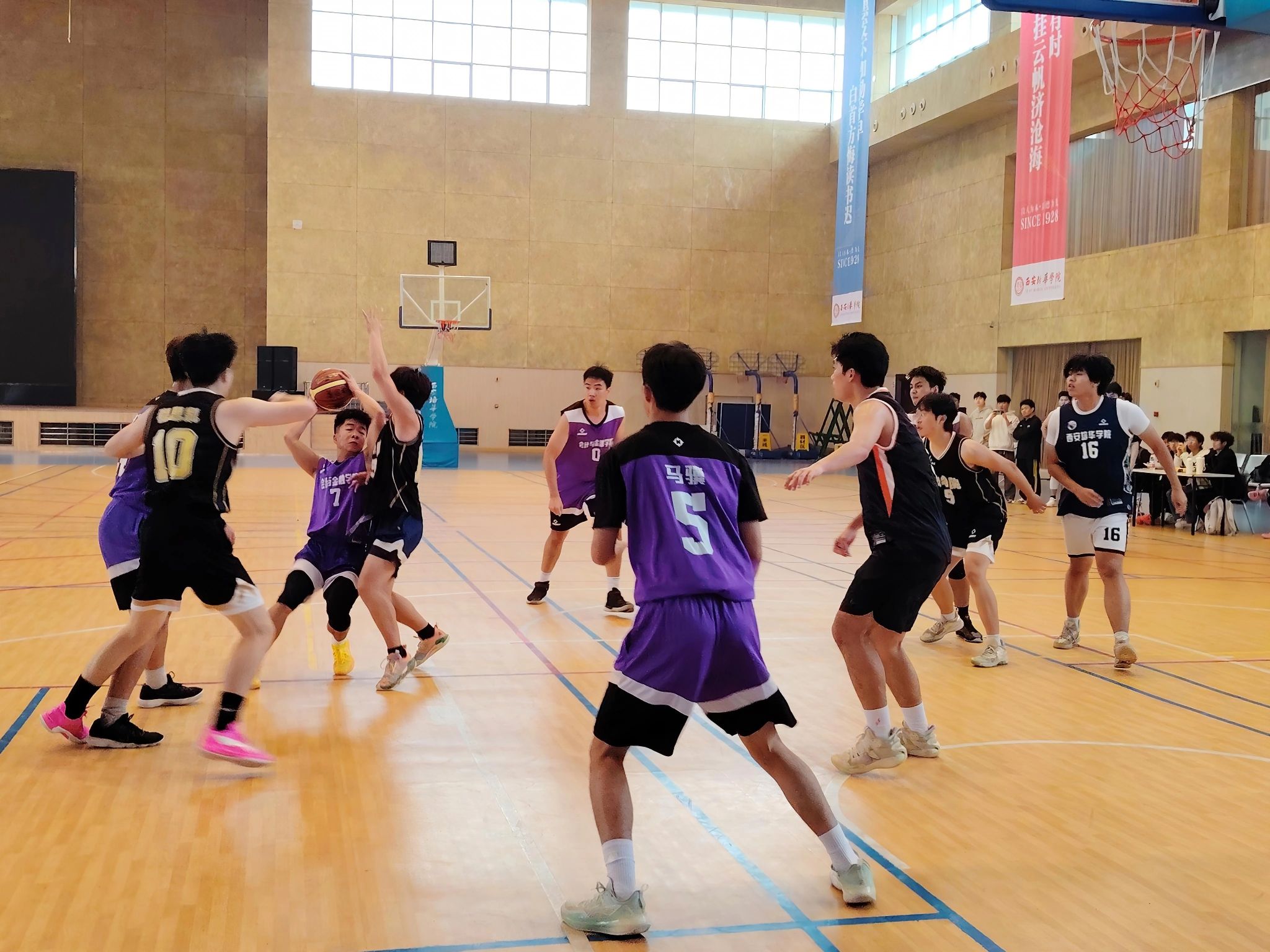 为丰富校园文化生活,促进各学院交流互动,增强团队协作与拼搏精神,我校于近期隆重举办了第十二届“五棵松”杯校创新篮球赛。本届赛事历时八天,吸引了全校多支劲旅同场竞技,气氛热烈、精彩不断。