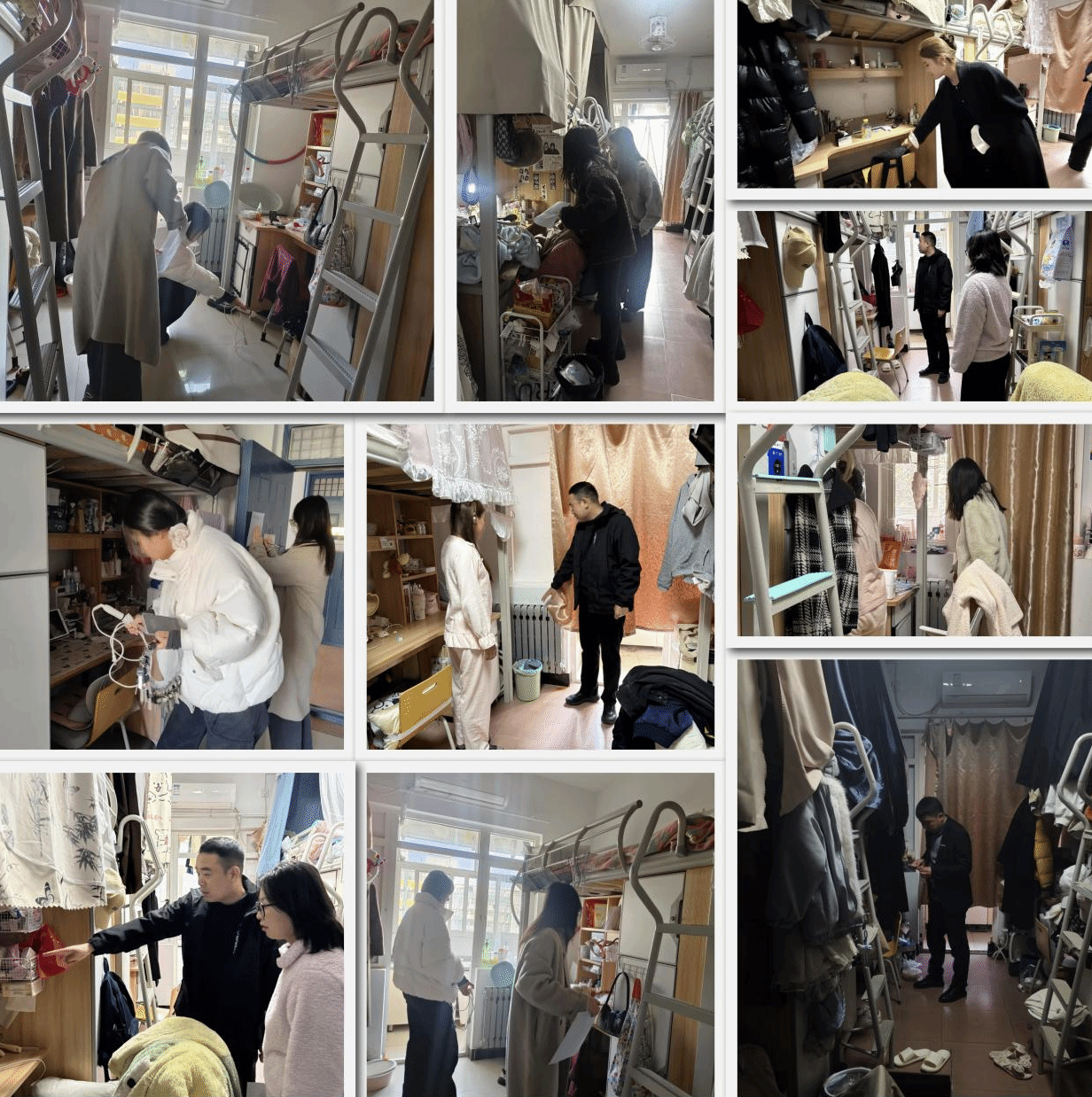 在安全隐患排查环节,走访组对学生宿舍用电安全、物品存放等进行全面检查。本次走访共在10间宿舍排查出违规用电器9件、含酒精饮品3瓶,工作人员当场登记并收缴,同时对相关学生进行安全教育,强调“安全无小事,防患于未然”的重要性。辅导员们还结合典型案例,向同学们普及了宿舍安全用电、防火防盗等注意事项,引导学生自觉遵守校园安全规定。